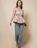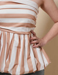 Ladies Off-Shoulder Striped Puff Hem Tube Top SKT41301