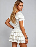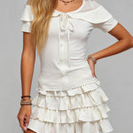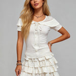 Ladies Off-Shoulder Tie Front Top & Ruffle Mini Skirt Set