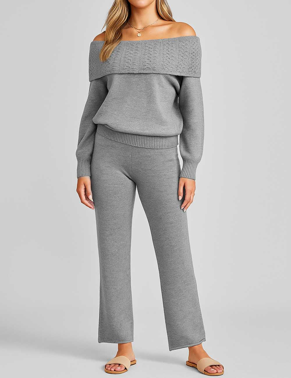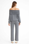 Ladies Off-Shoulder Wide Leg Knit Top & Pants Set