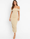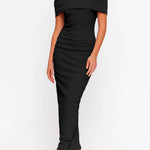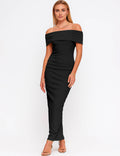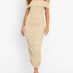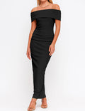 Ladies Off-Shoulder Ruched Hip Wrap Maxi Dress