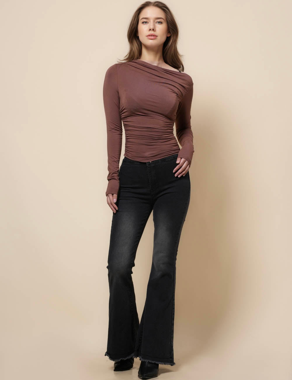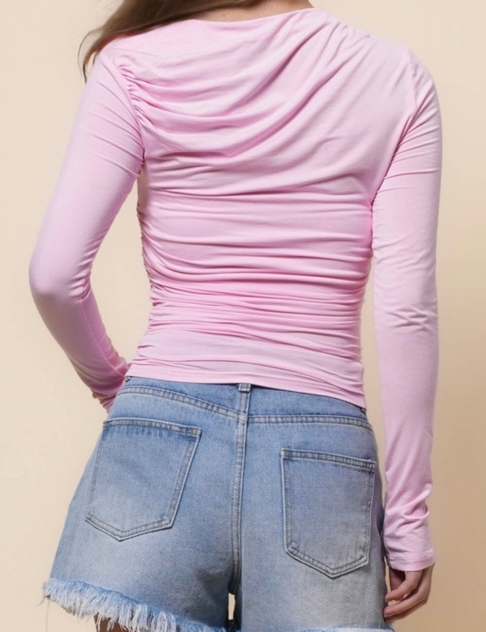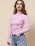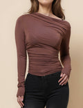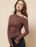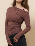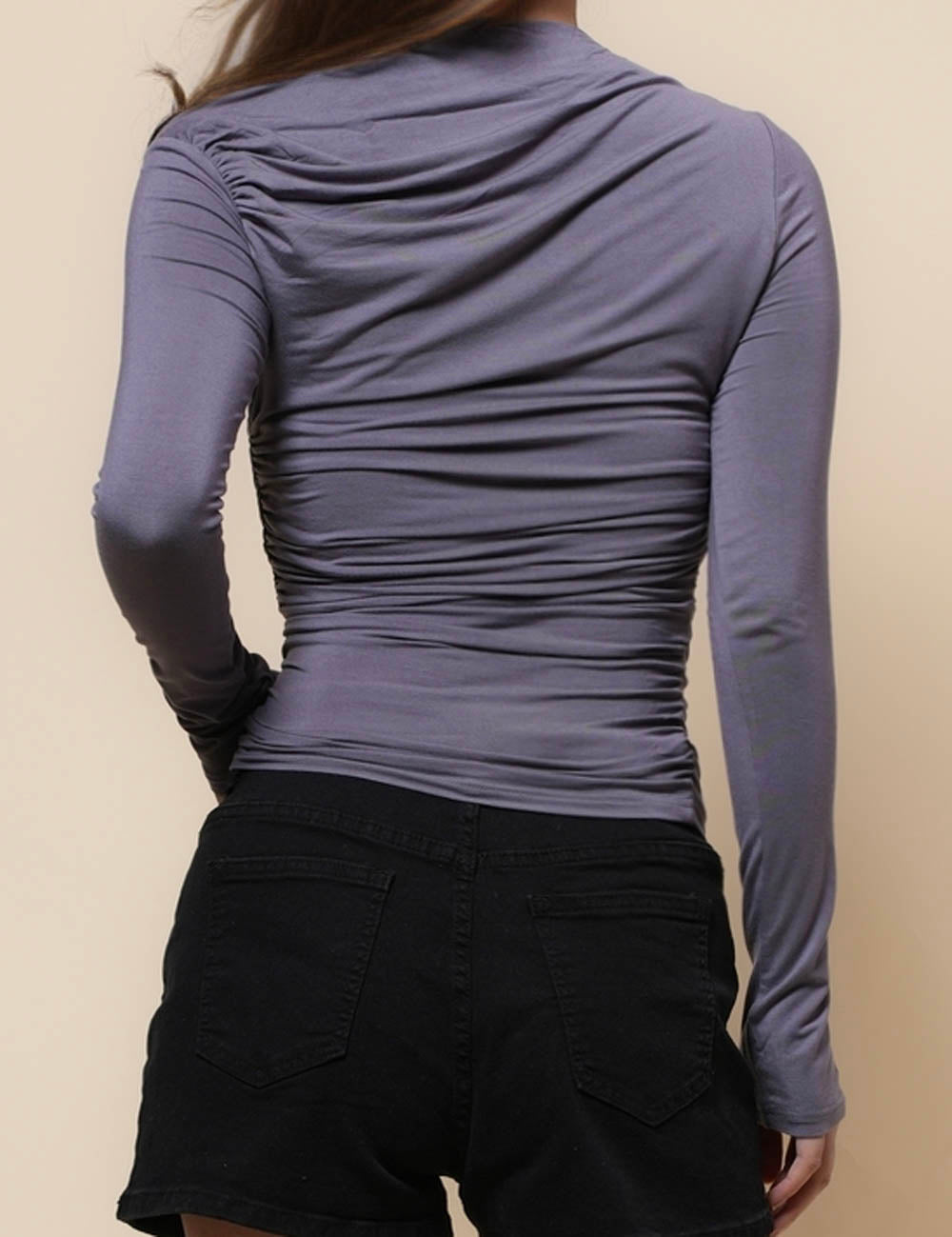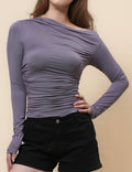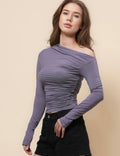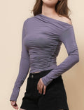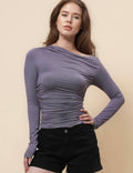 Ladies One Shoulder Blouse Wrinkle Layring Top SKT41227