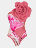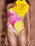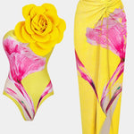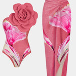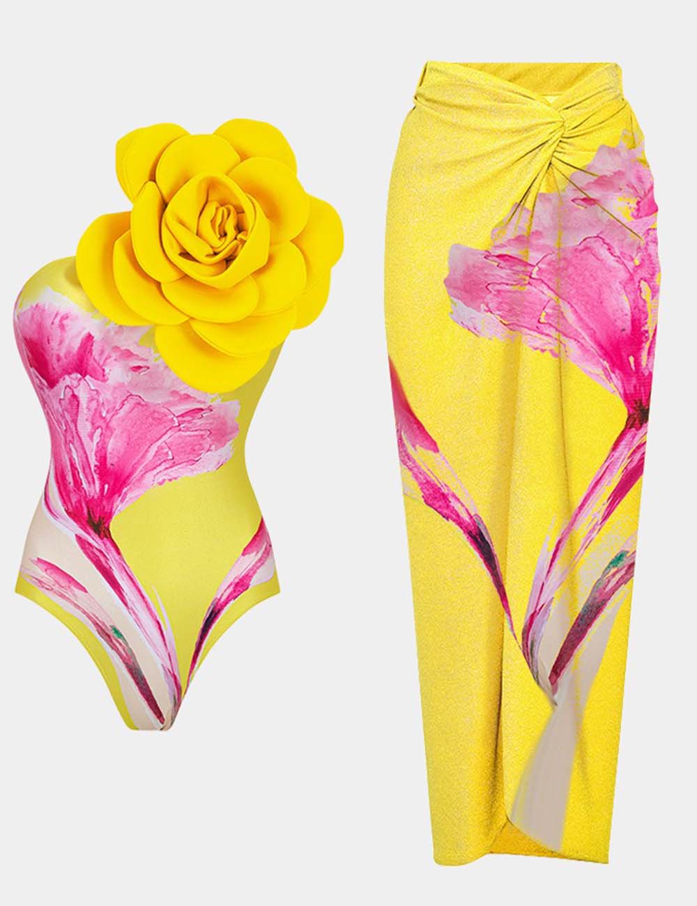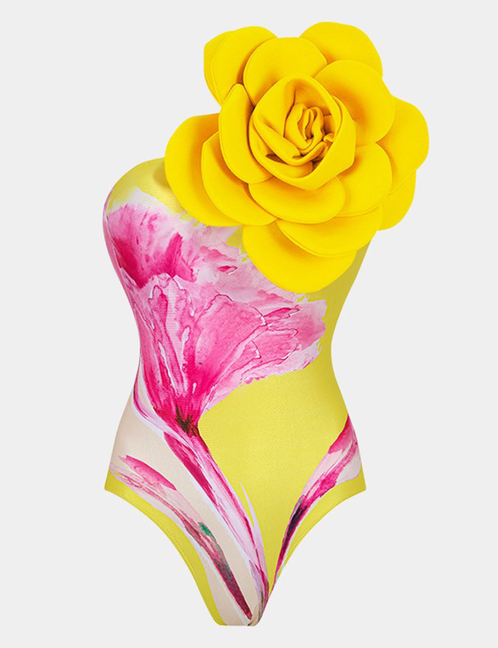 Ladies One Shoulder Floral Print One Piece Swimwear with Salong