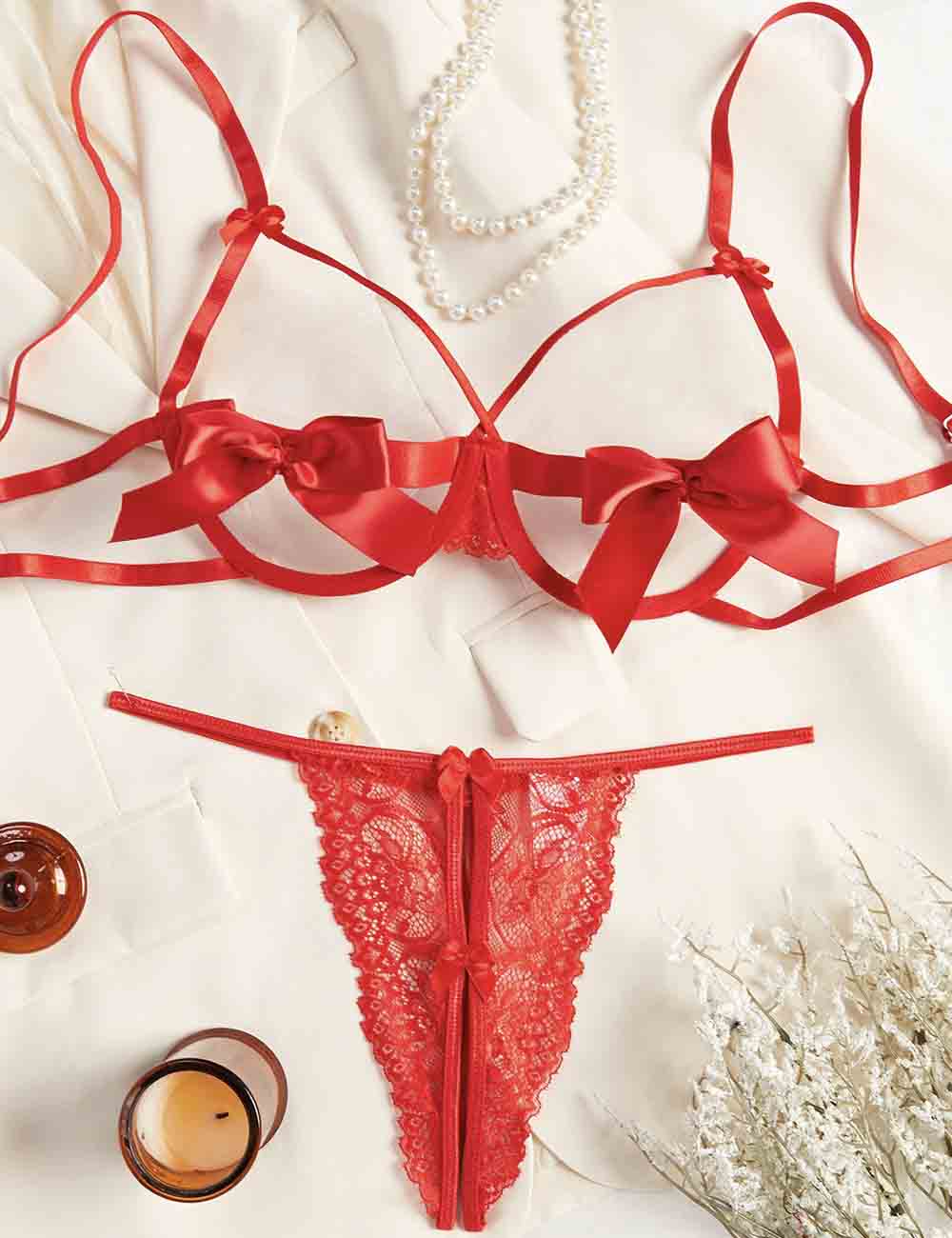 Ladies Open Cup T-String Spicy 2PCS Lingerie Set 8HF4190