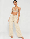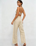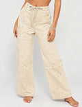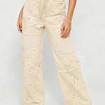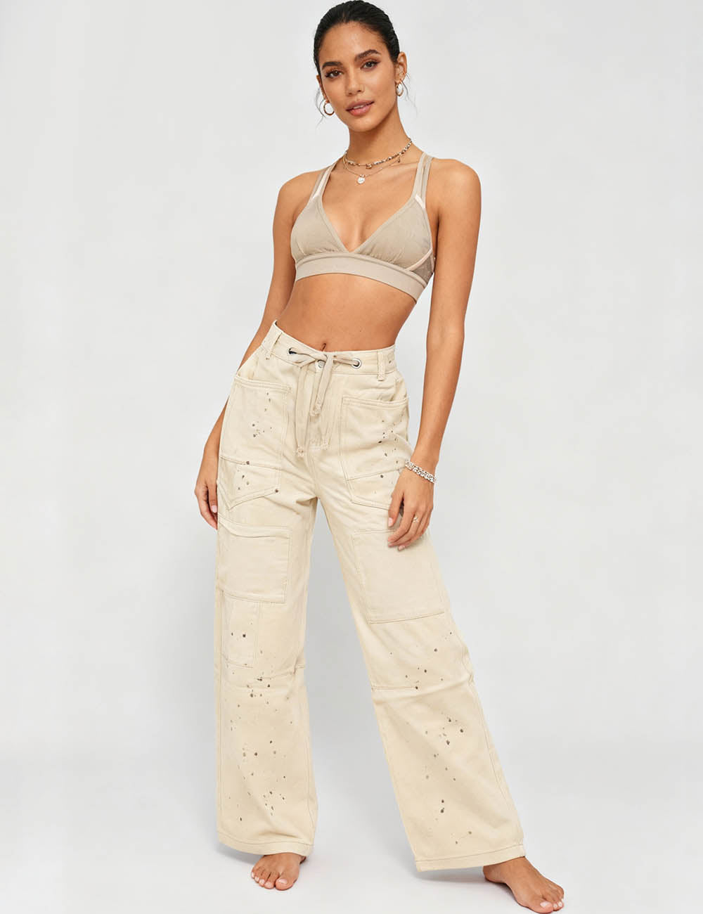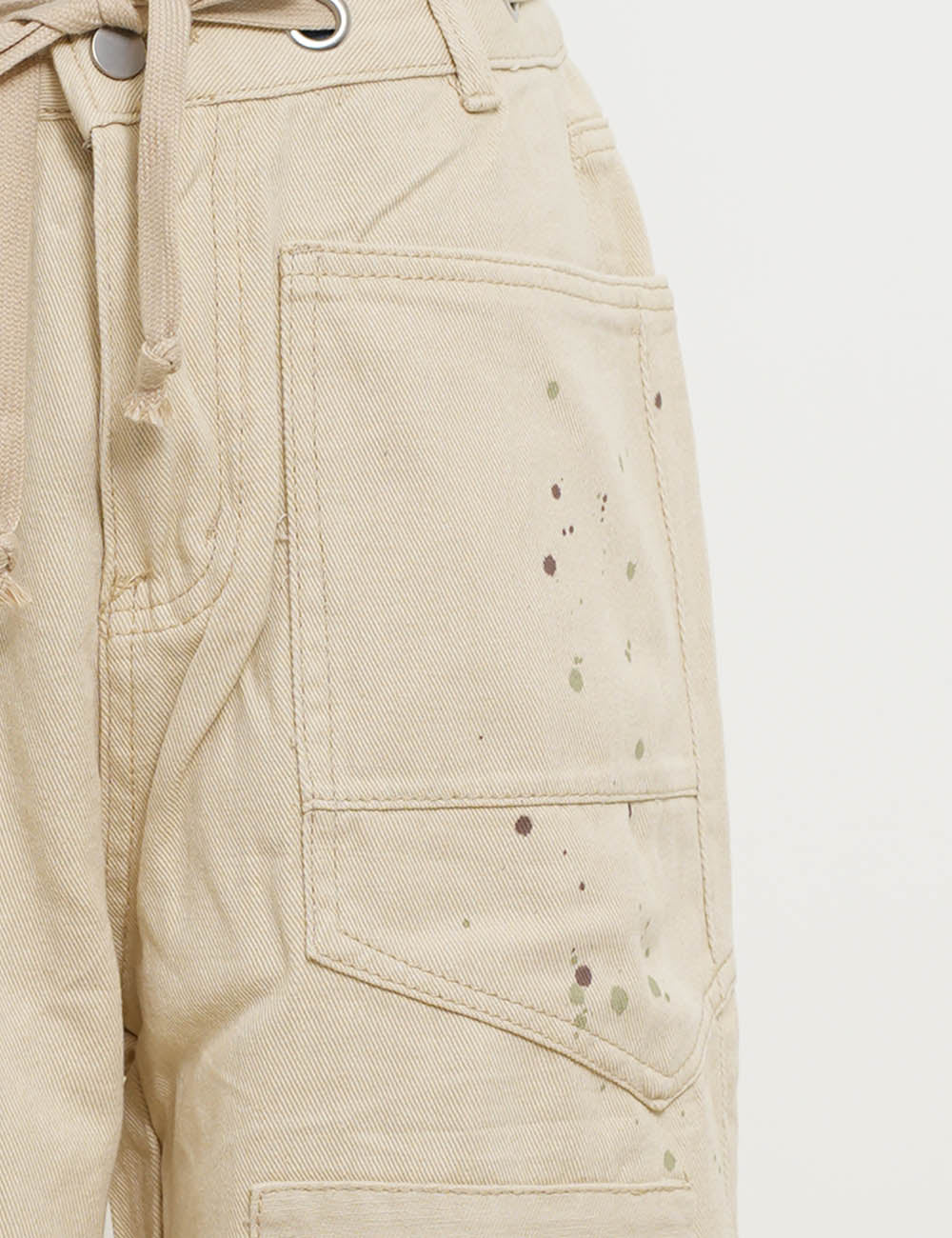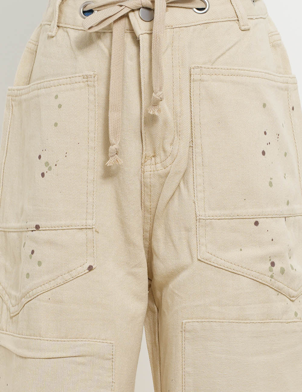 Ladies Paint Splatter Drawstring Wide Leg Denim Pants