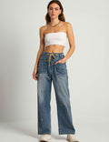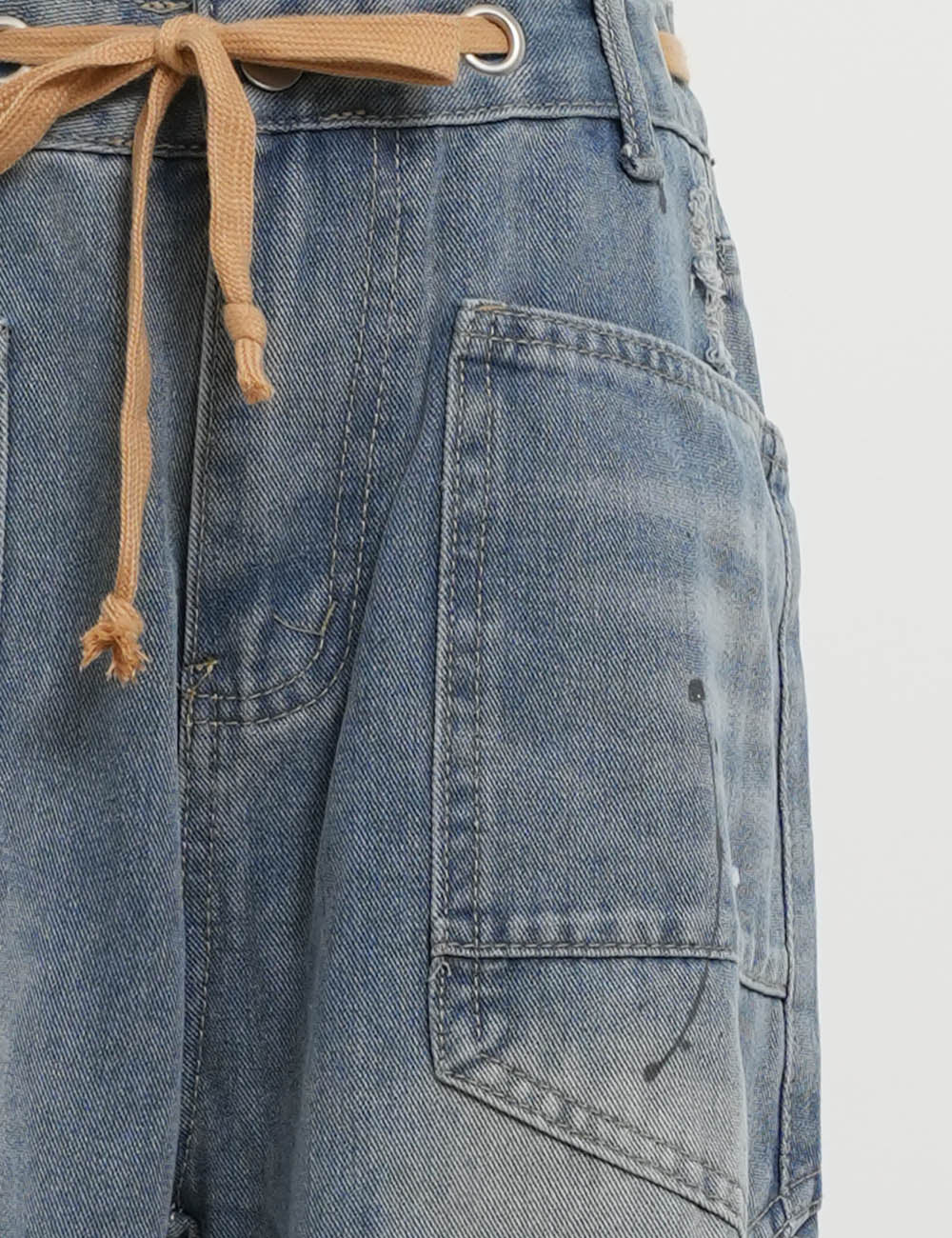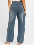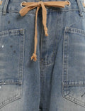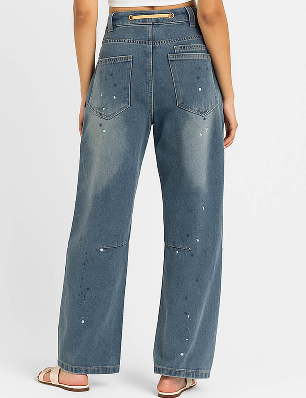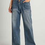 Ladies Paint Splatter Print Jeans Drawstring Barrel Leg Denim Pants