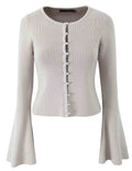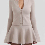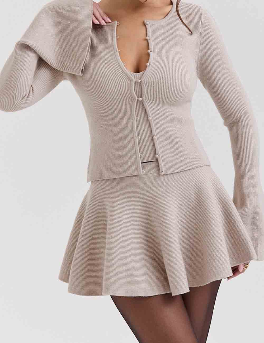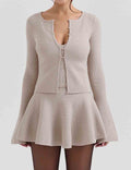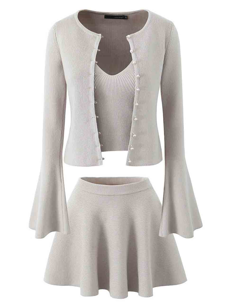 Ladies Pearl Button Knit Cardigan & Skirt 3PCS Set