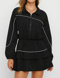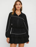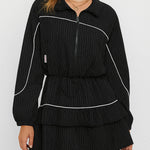 Ladies Plaid Set Zipper Collar Jacket & Tiered Ruffle Skorts Set