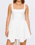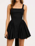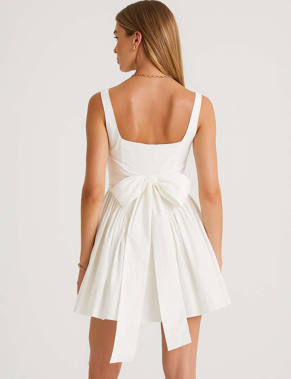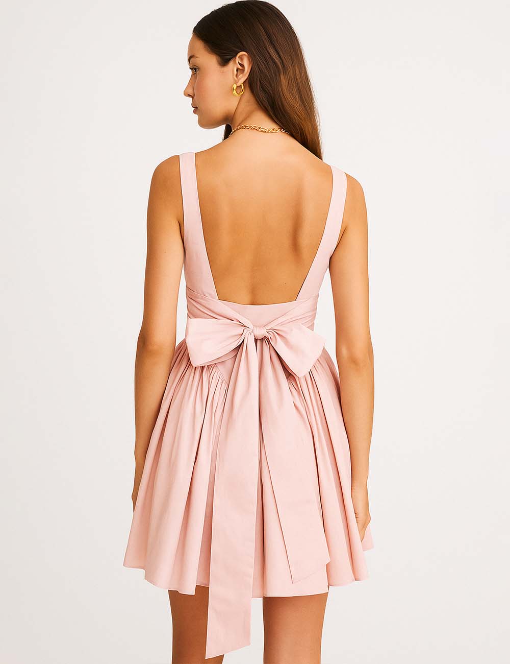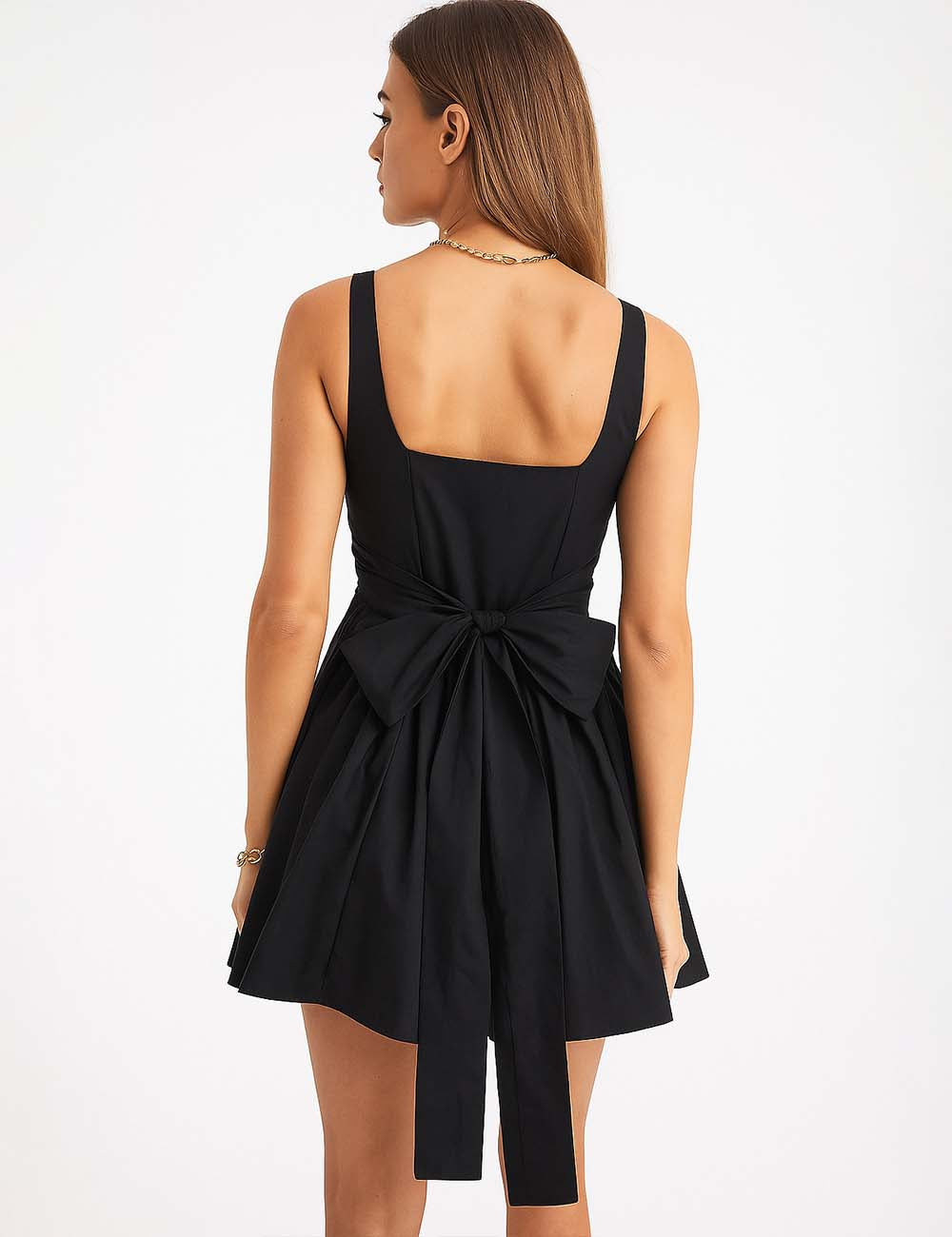 Ladies Plain Ruched Bow Back Mini Dress 4253