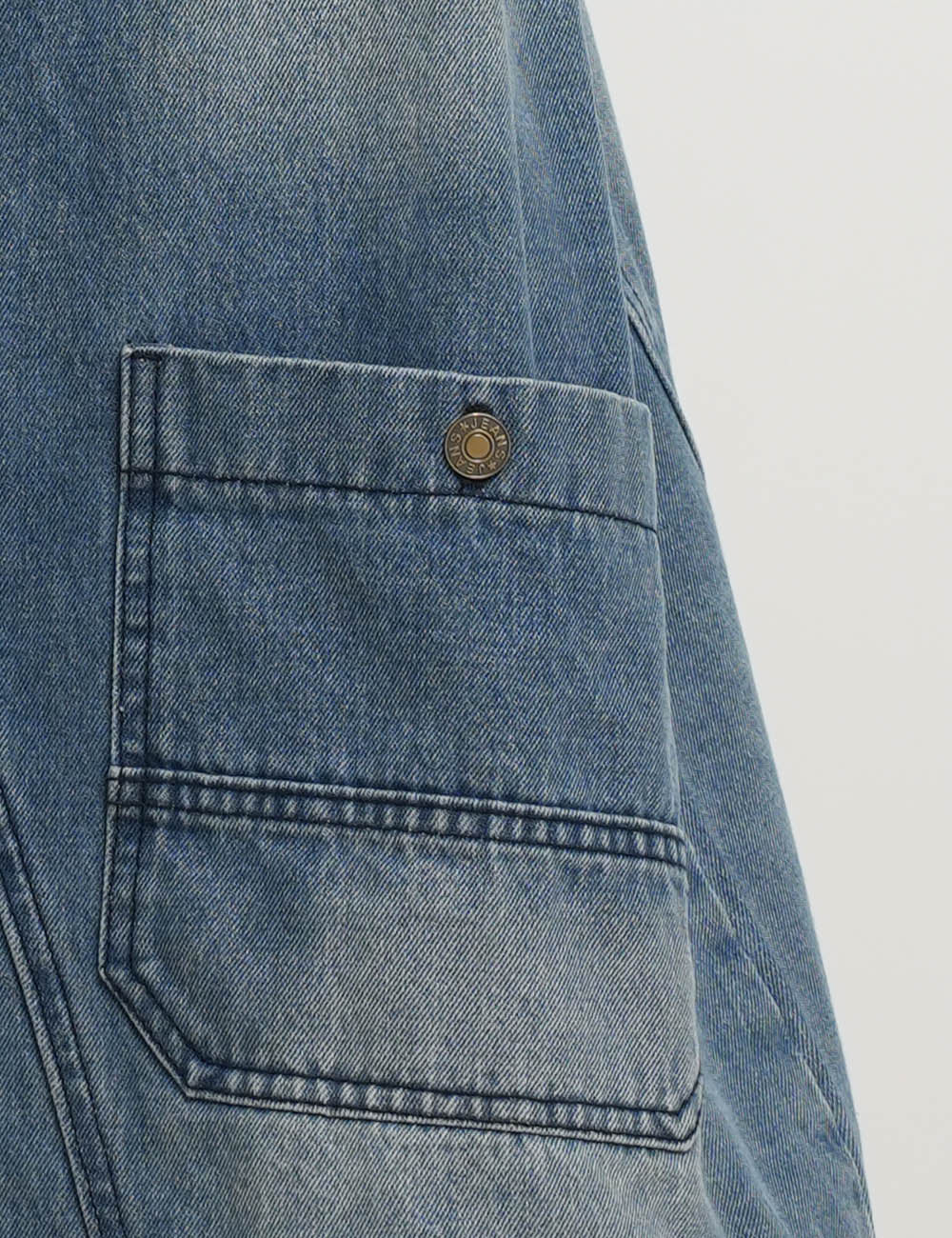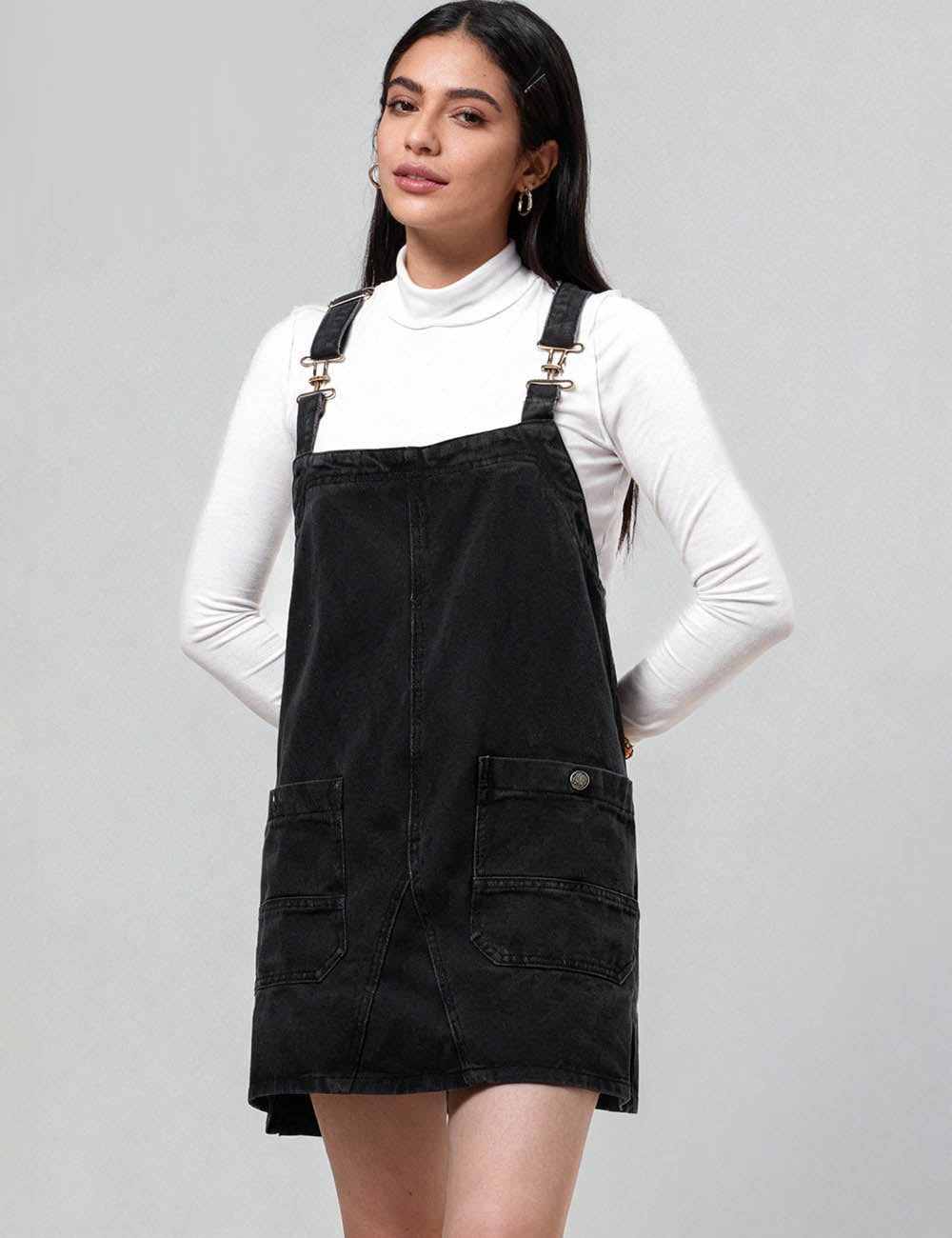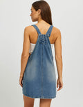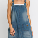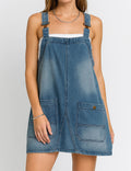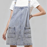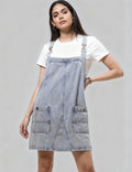 Ladies Pocket Denim Mini Overall Dress SKD549