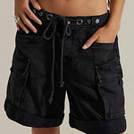 Ladies Pocket Drawstring Elastic Waist Rolled Denim Shorts