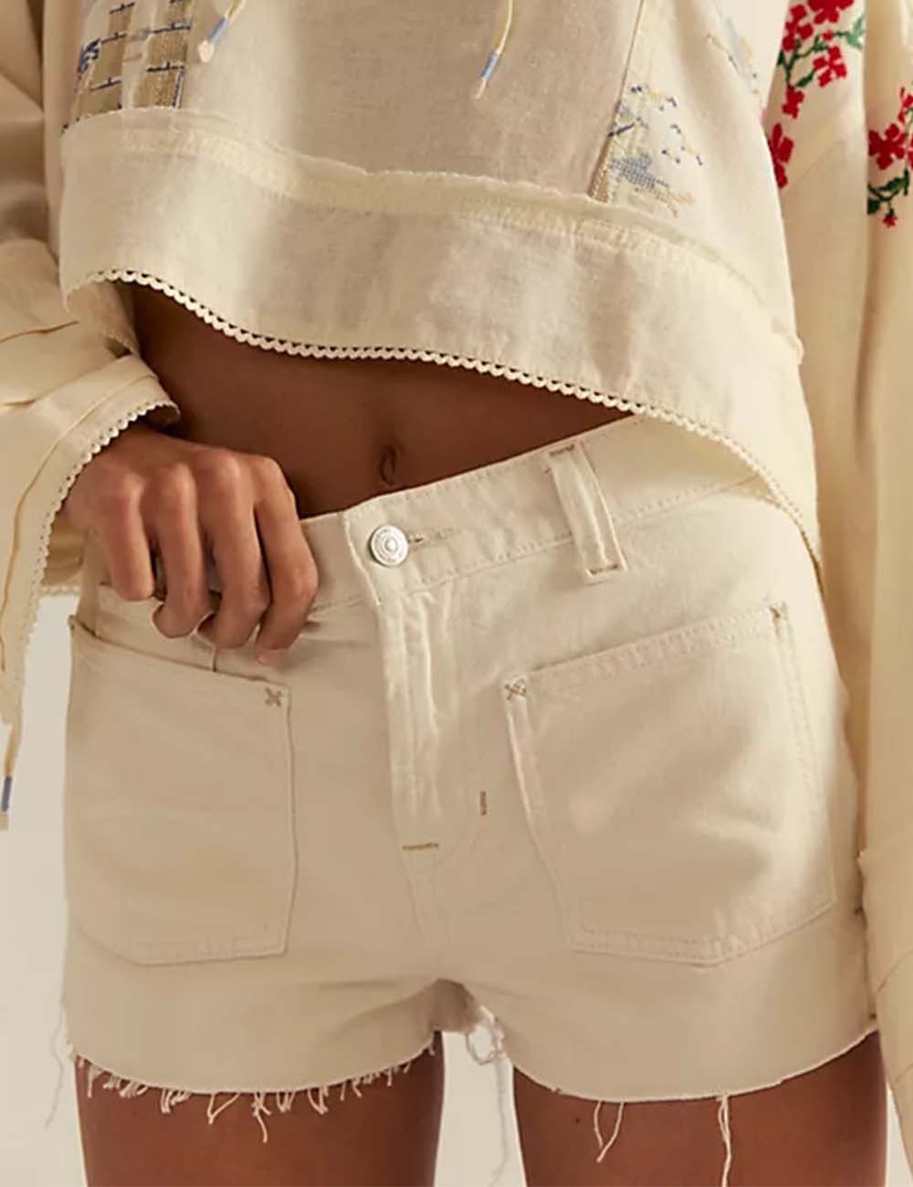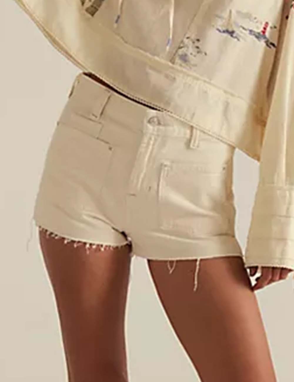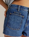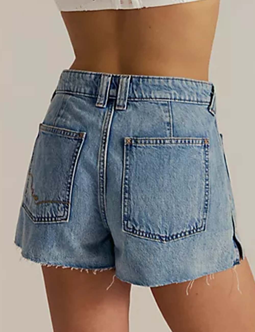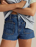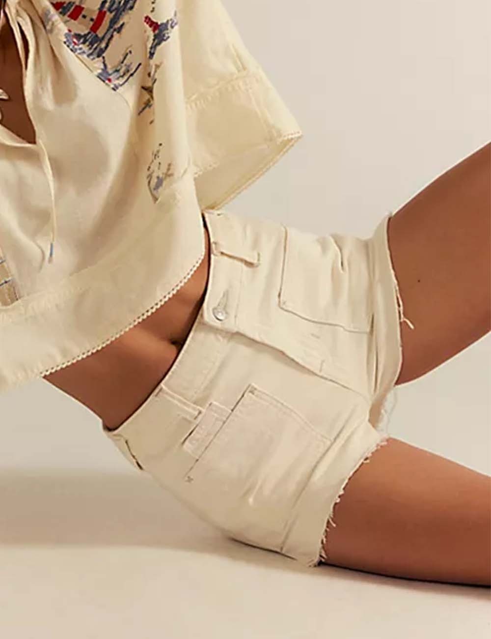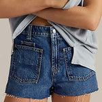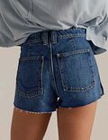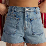 Ladies Pockets Hot Shorts Button Raw Edge Denim Shorts