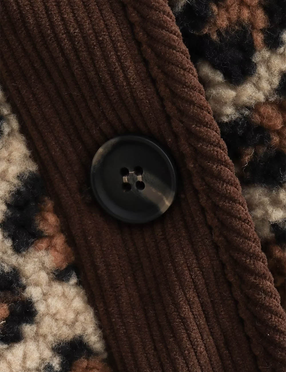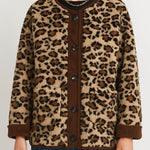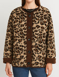 Ladies Polar Fleece Leopard Botton Jacket A34397