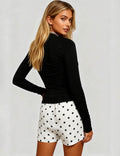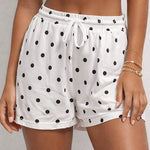 Ladies Polka Dot Elastic Waist Drawstring Wide Leg Shorts