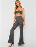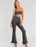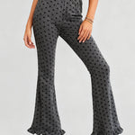 Ladies Polka Dot Elastic Waist Ruffle Flared Leg Pants
