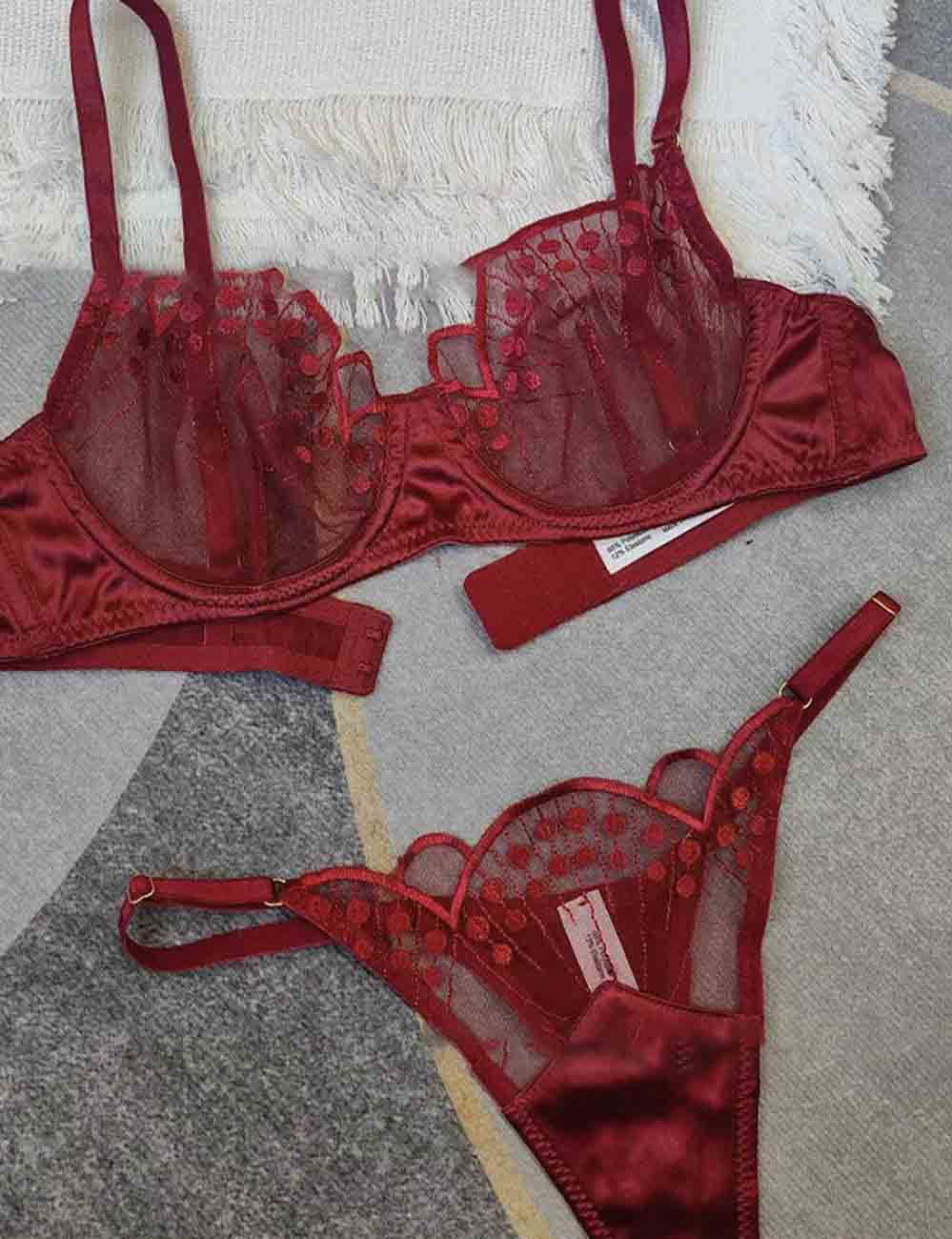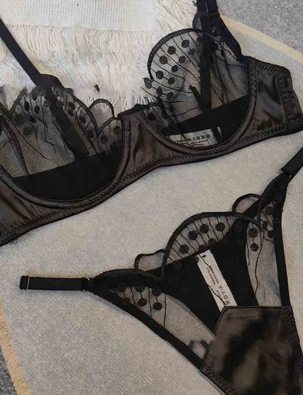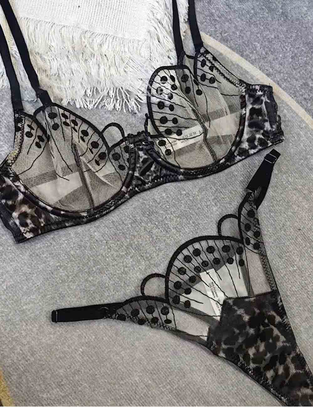 Ladies Polka Dot Embroidery Lace 2PCS Lingerie Set 8W7636