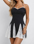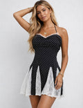 Ladies Polka Dot Halter Neck Lace Panel Cami Mini Dress