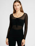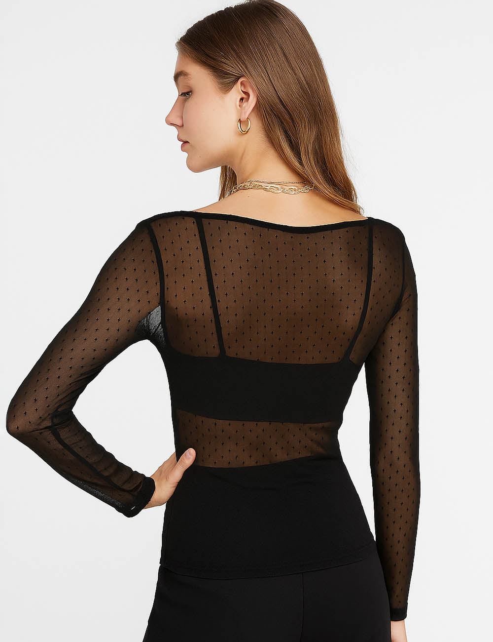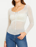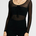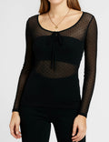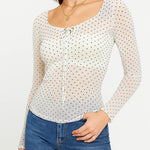 Ladies Polka Dot Layer See Sheer Long Sleeves Top