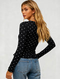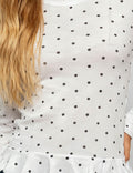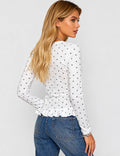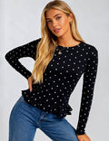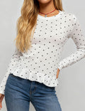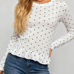 Ladies Polka Dot Round Neck Ruffle Hem Layering Top