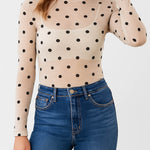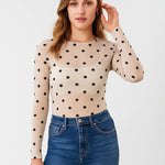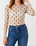 Ladies Polka Dot See Sheer Long Sleeves Layering Top