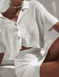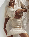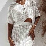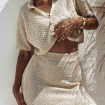 Ladies Polo Collar Knit Eyelet Cropped Top & Skirt Set