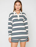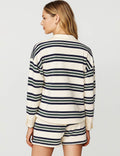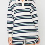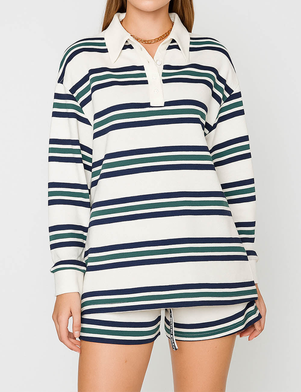 Ladies Polo Collar Striped Long Sleeves Sweatshirt & Shorts Set