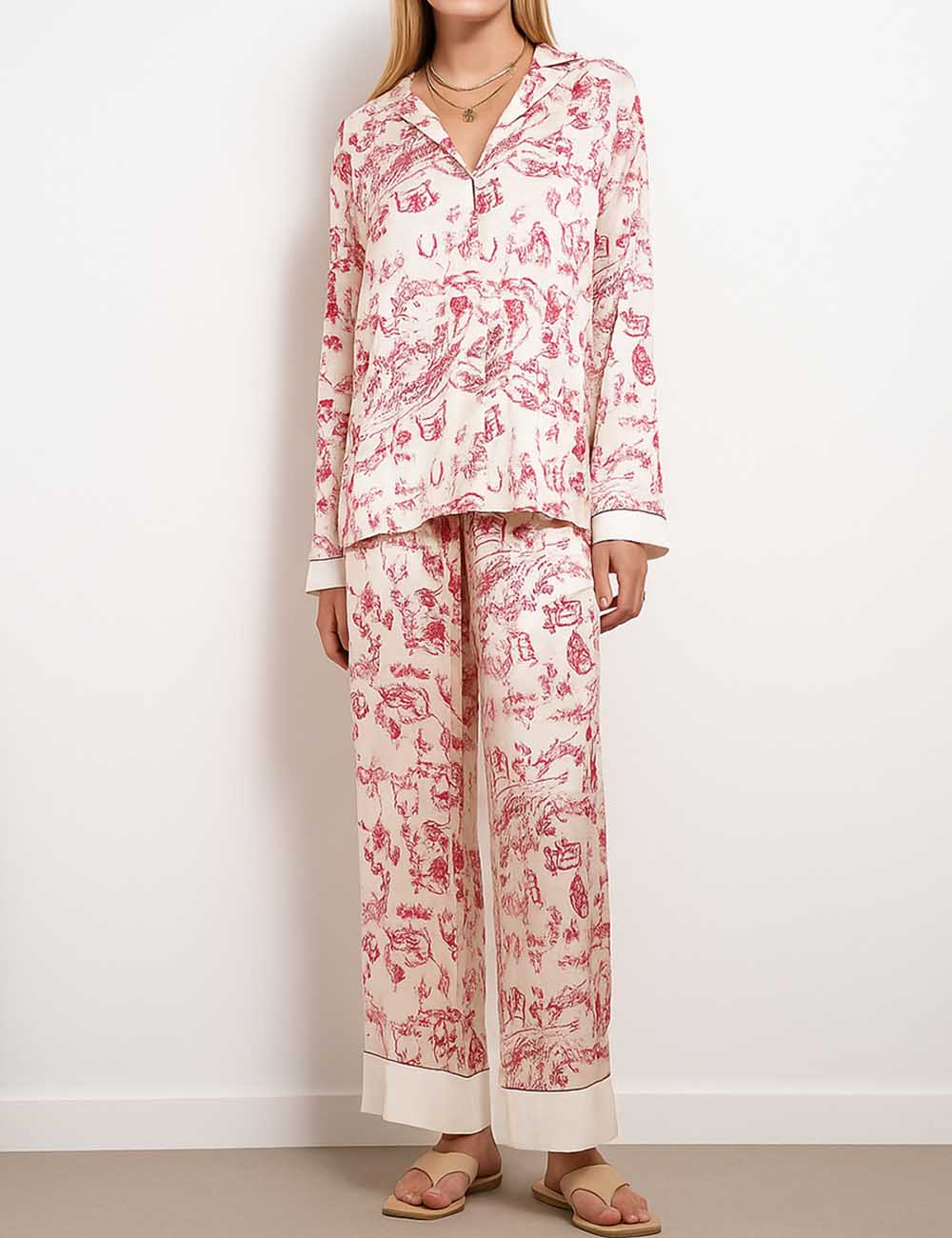 Ladies Print Button Closure Top & Pants Lounge Set SKST5K17