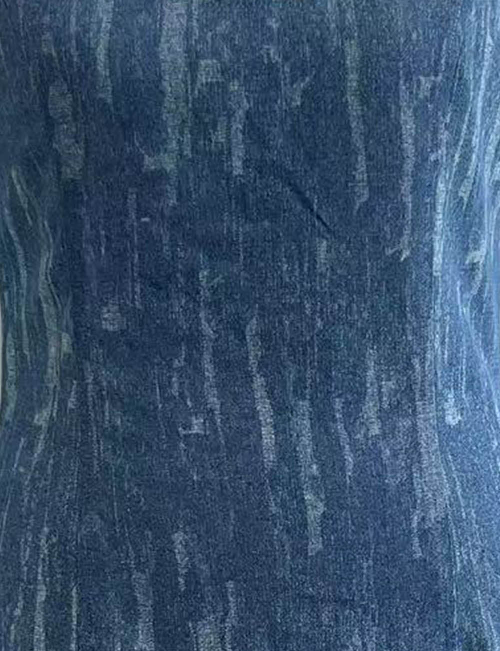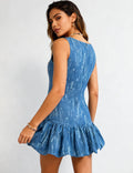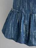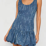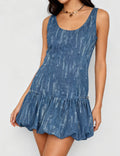 Ladies Print Scoop Neck Puff Hem Denim Mini Dress