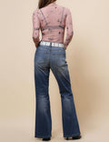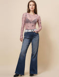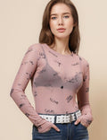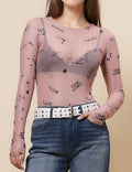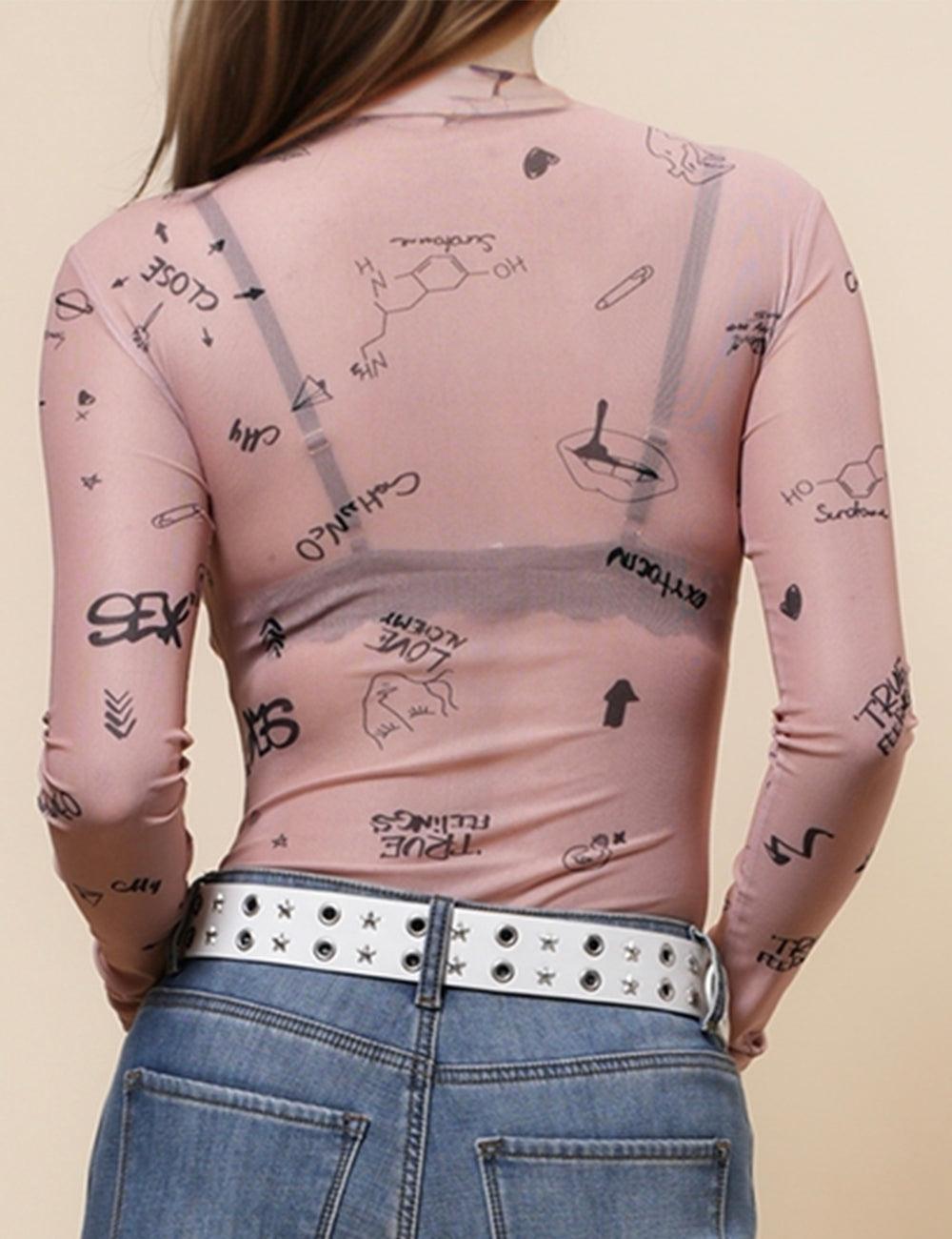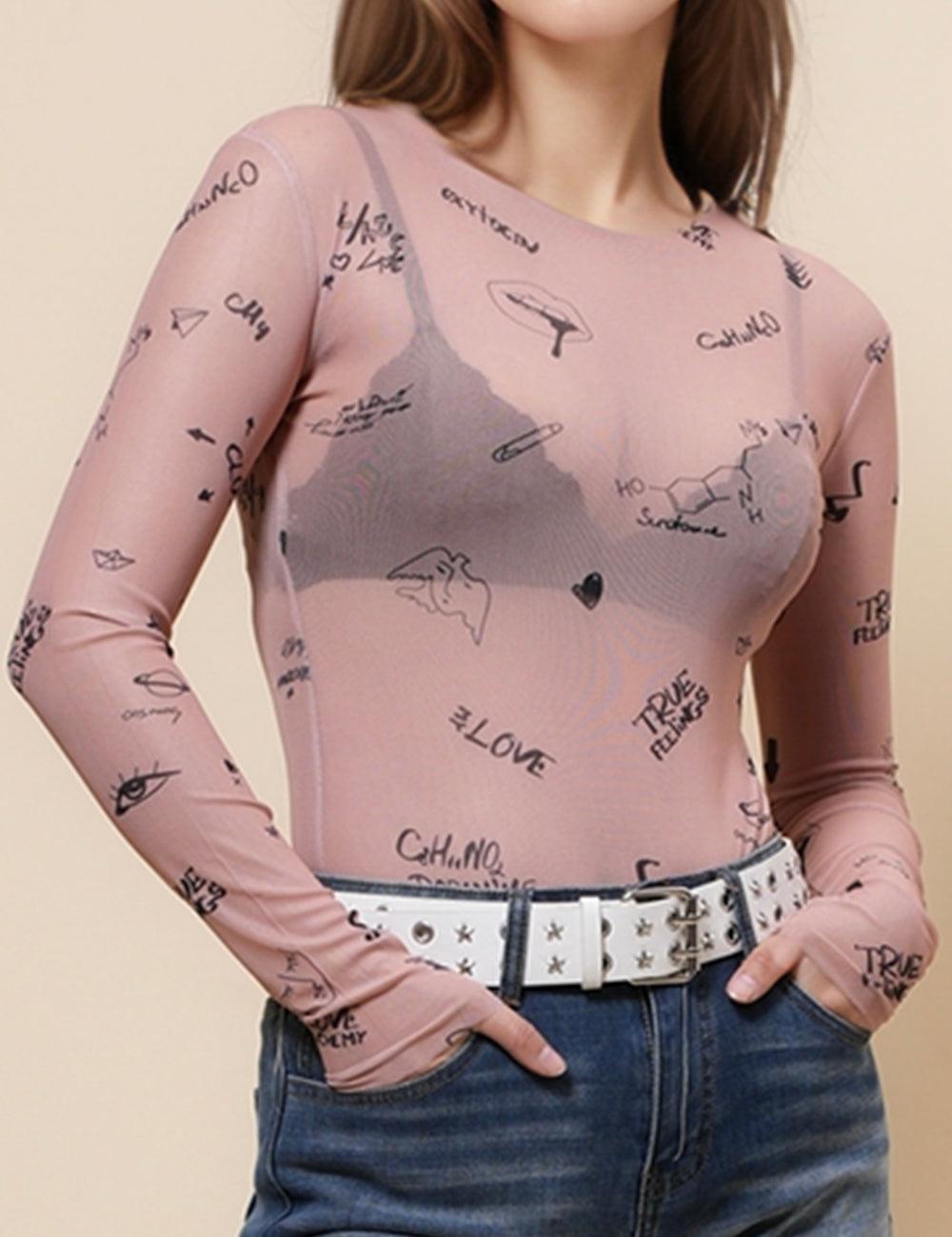 Ladies Print See Sheer Blouse Mesh Layring Top SKT4943