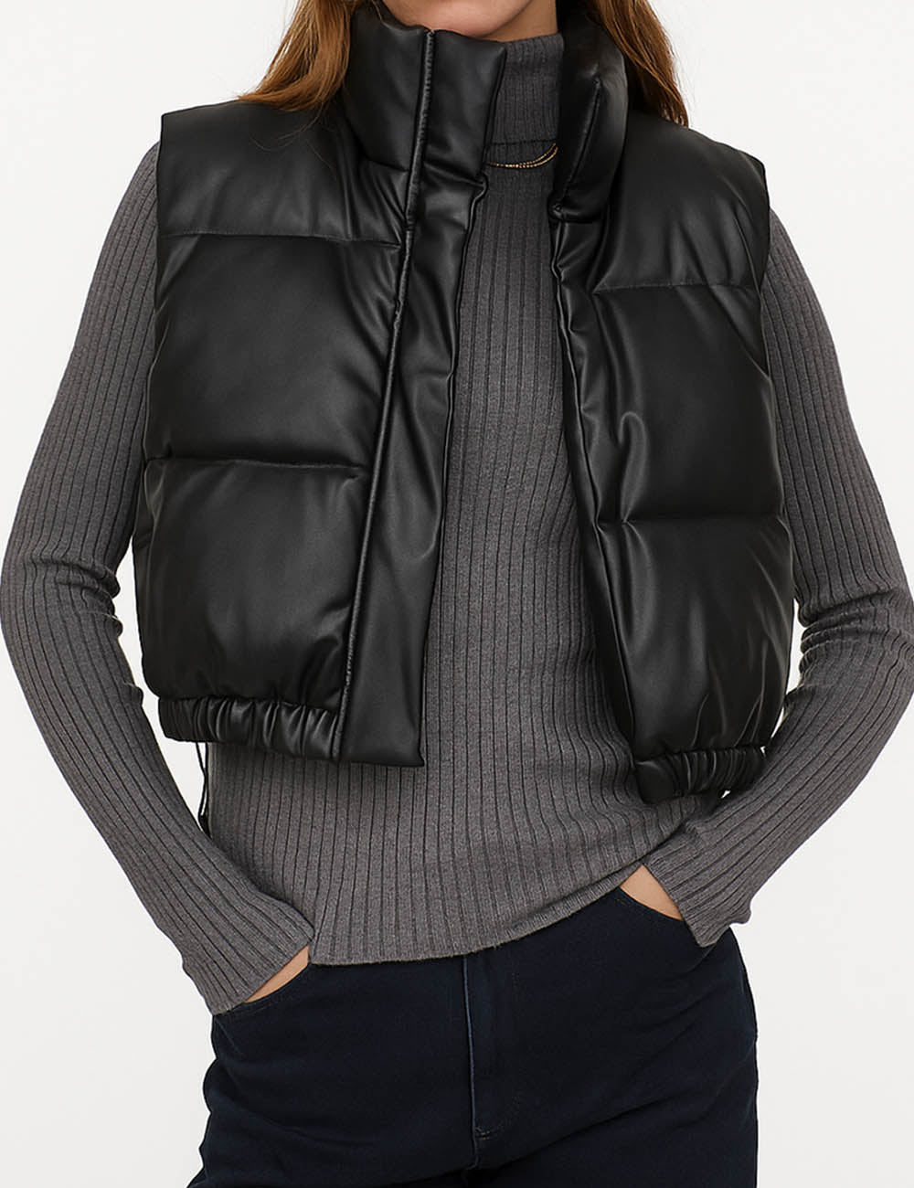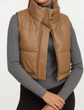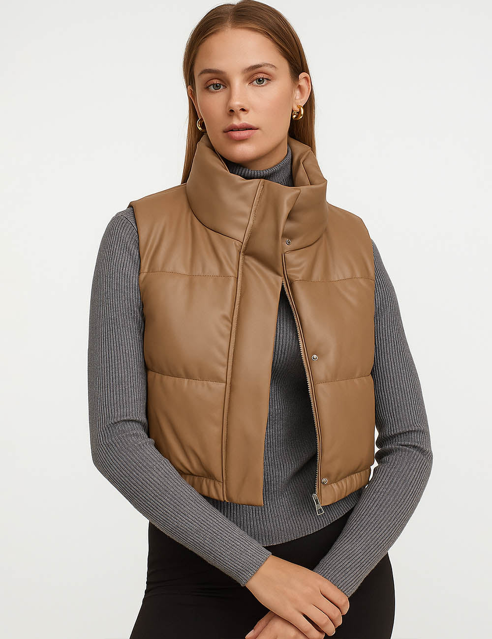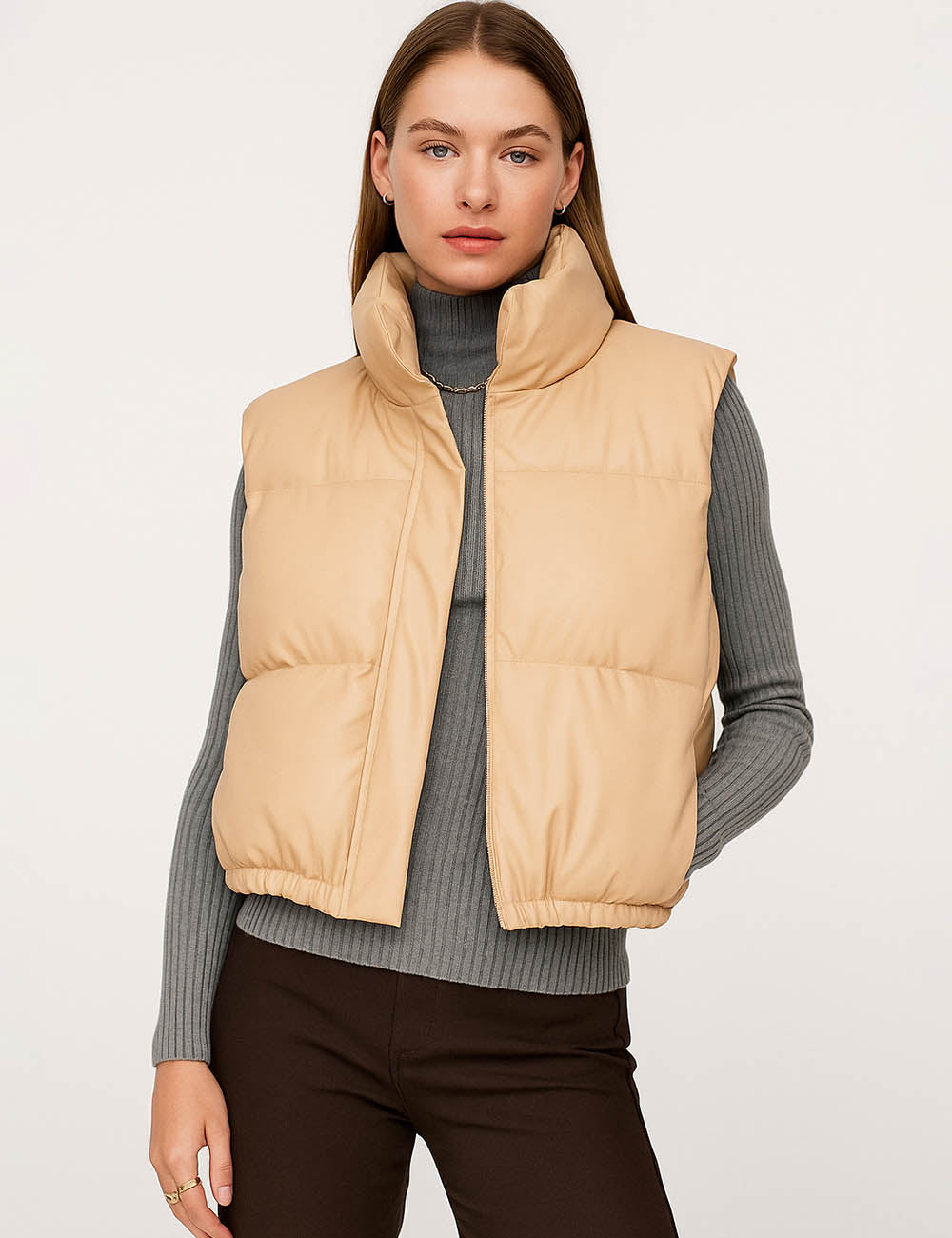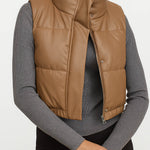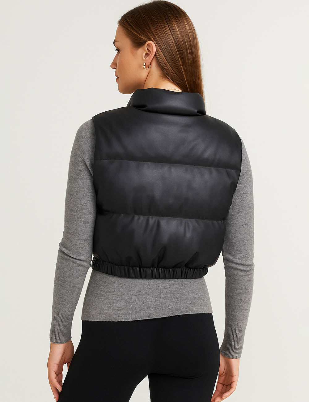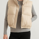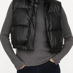 Ladies PU Leather Sleeveless Jacket Stand Collar Padded Vest