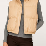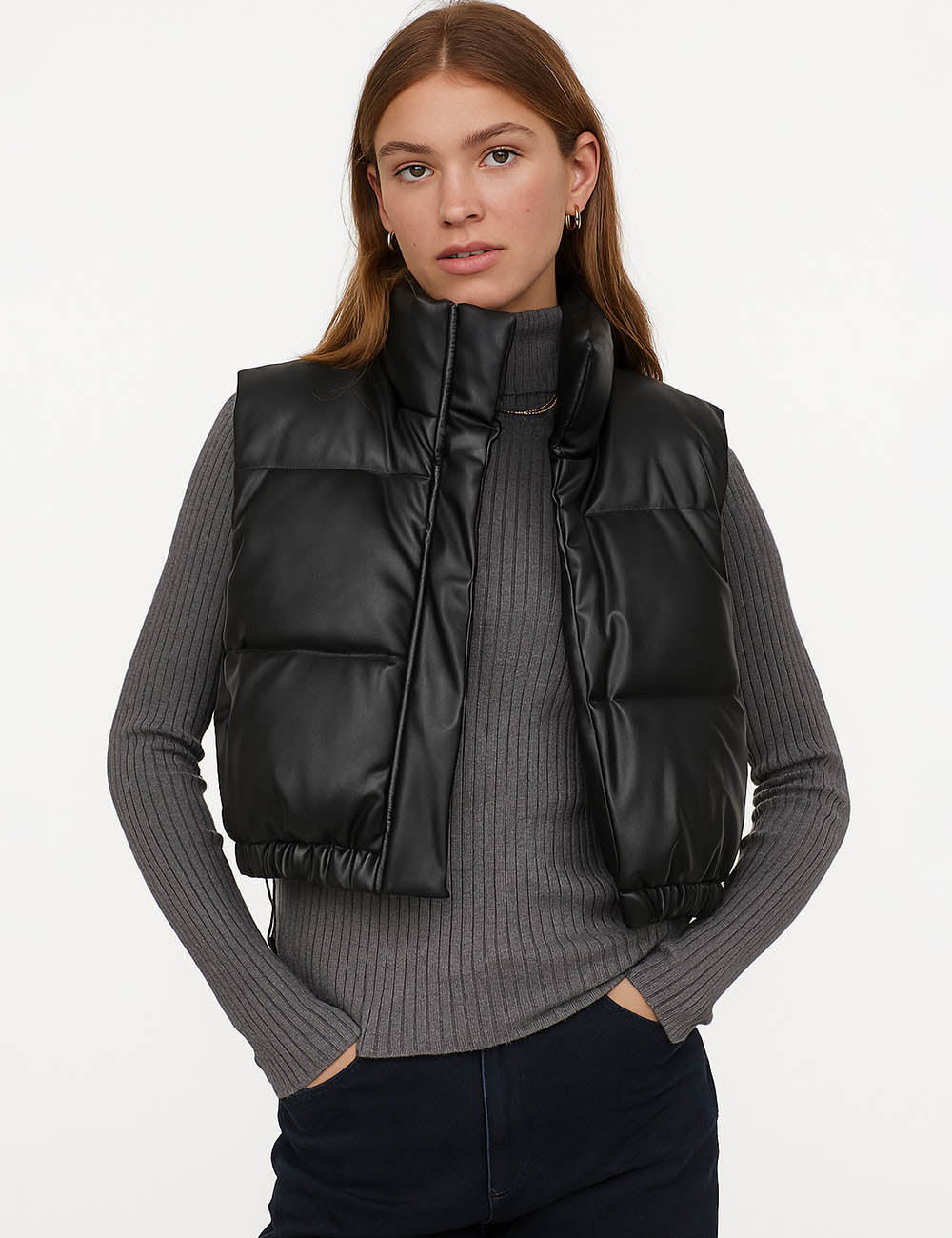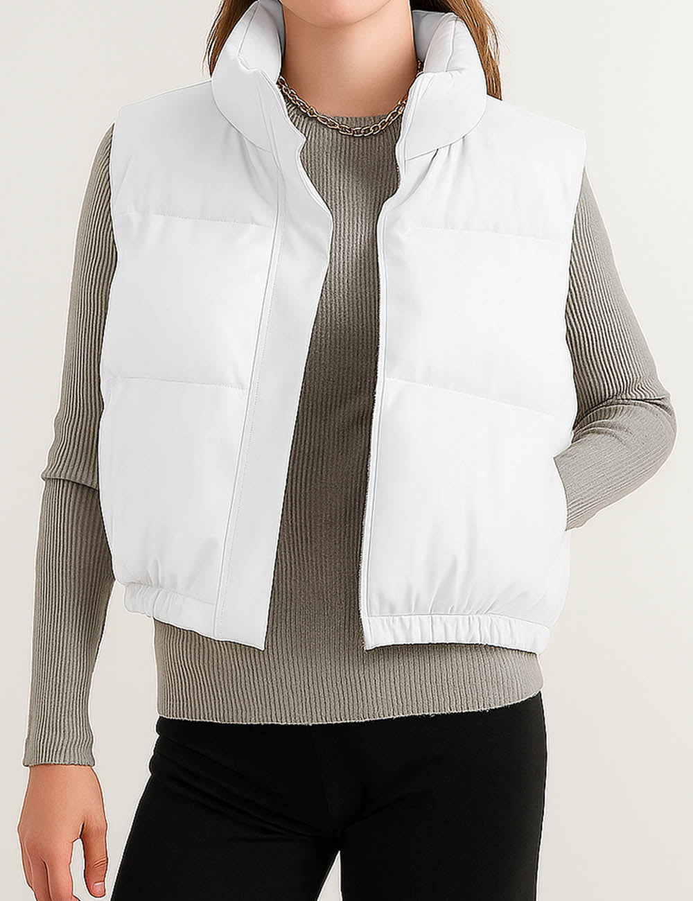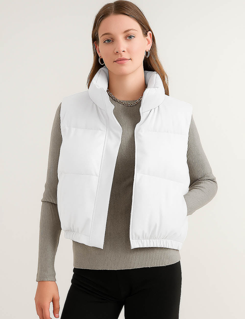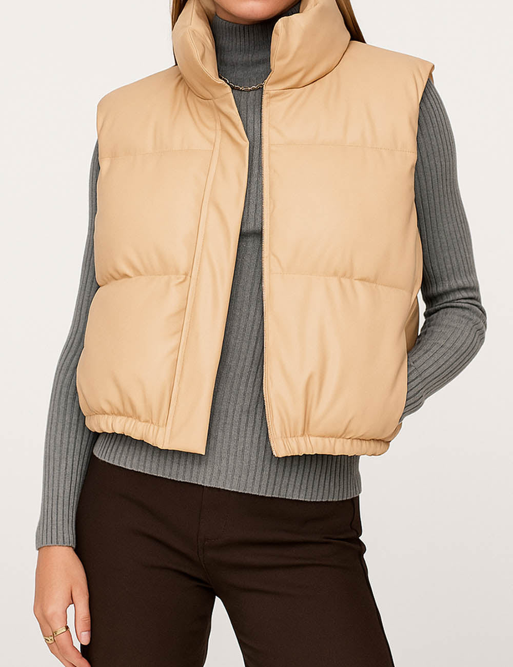 Ladies PU Leather Sleeveless Jacket Stand Collar Padded Vest