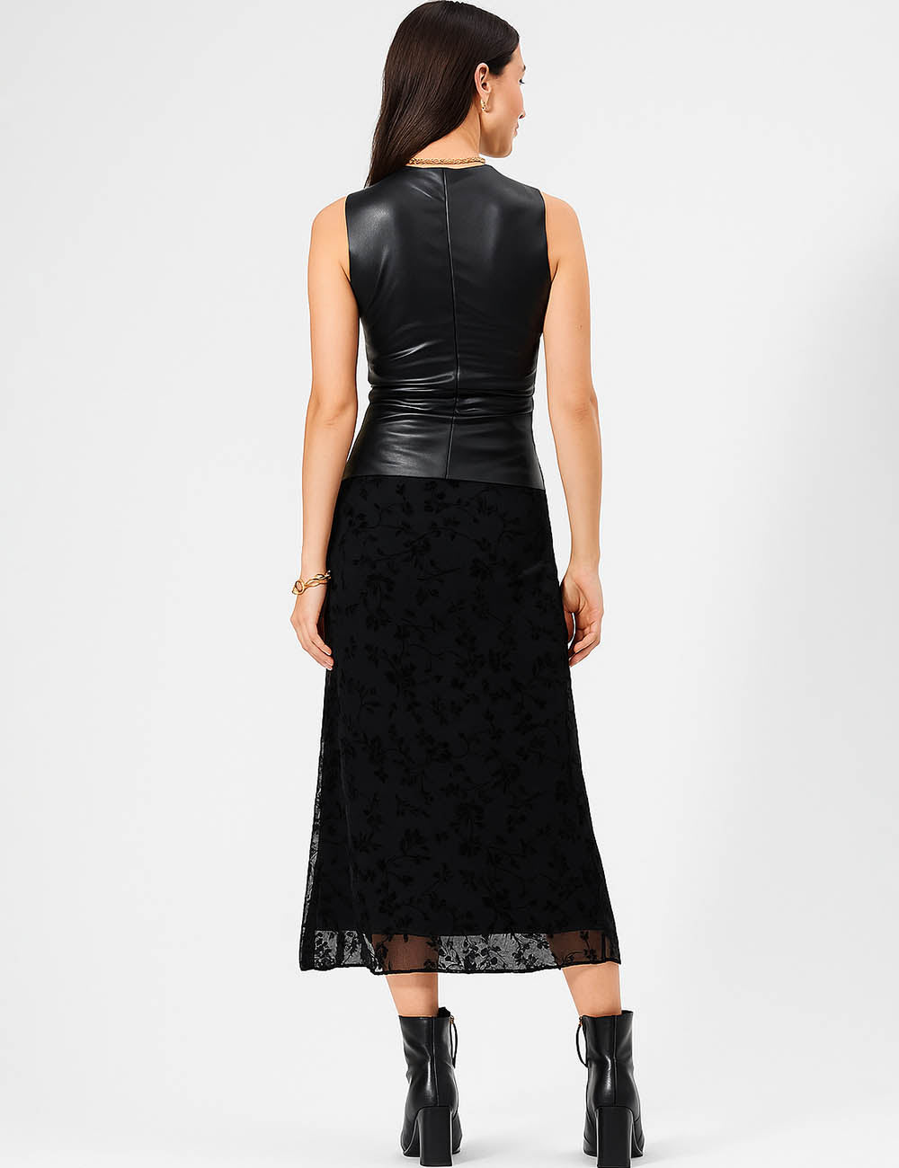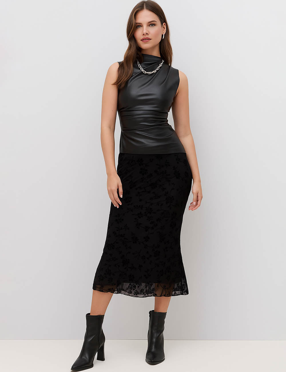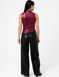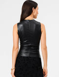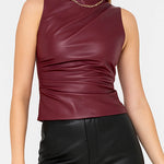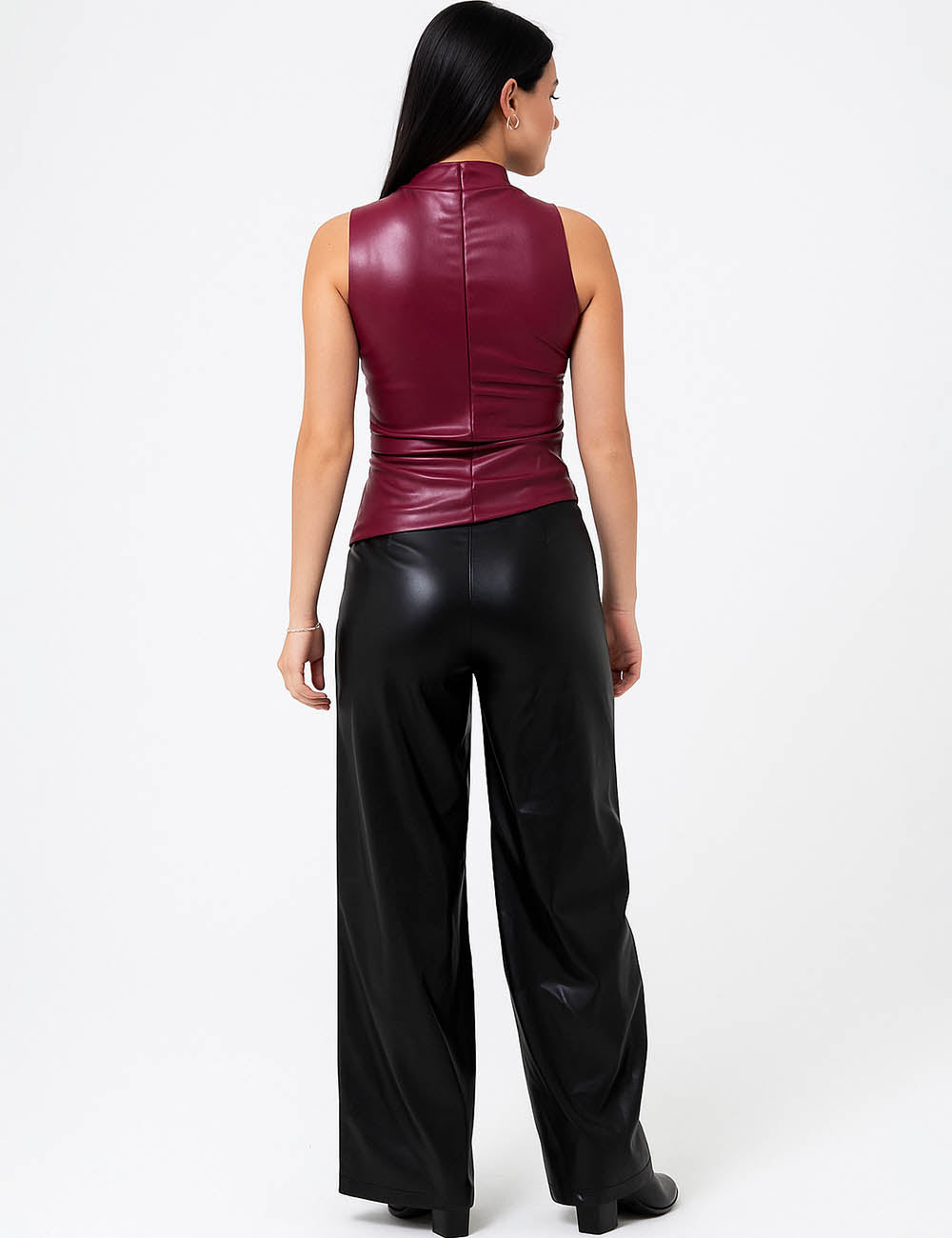 Ladies PU Turtle Neck Sleeveless Inregular Wrinkle Top SKT4951