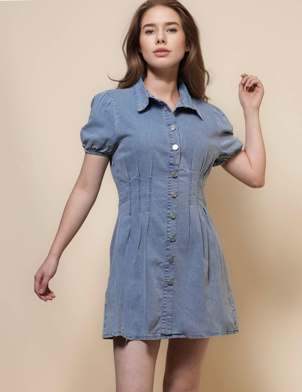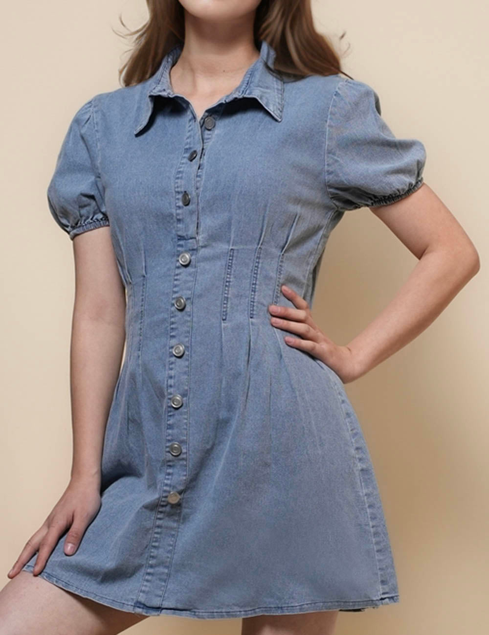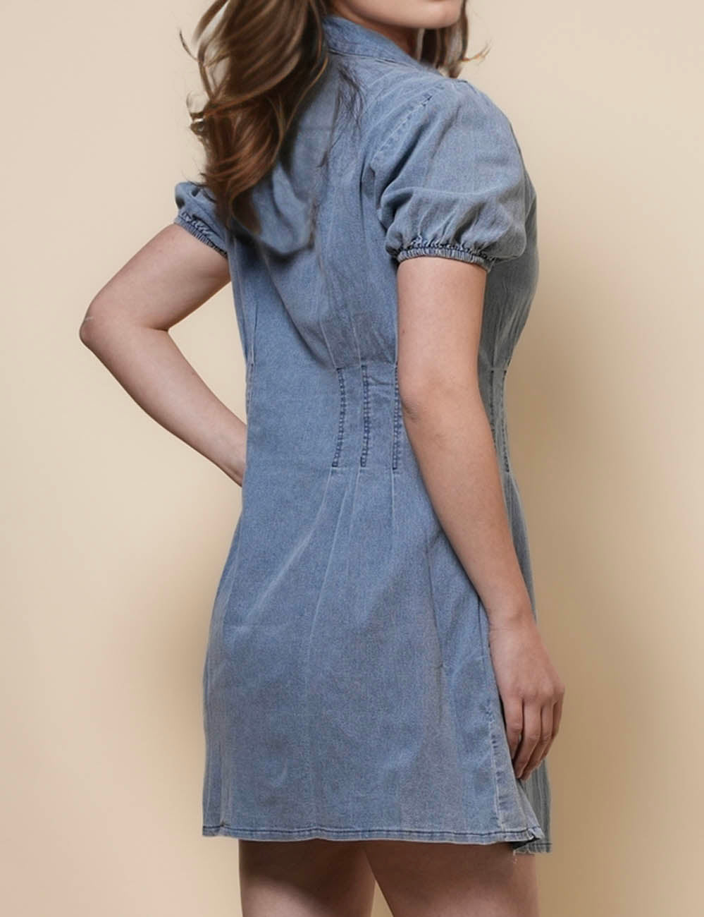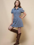 Ladies Puff Sleeves Denim Mini Dress SKD50028