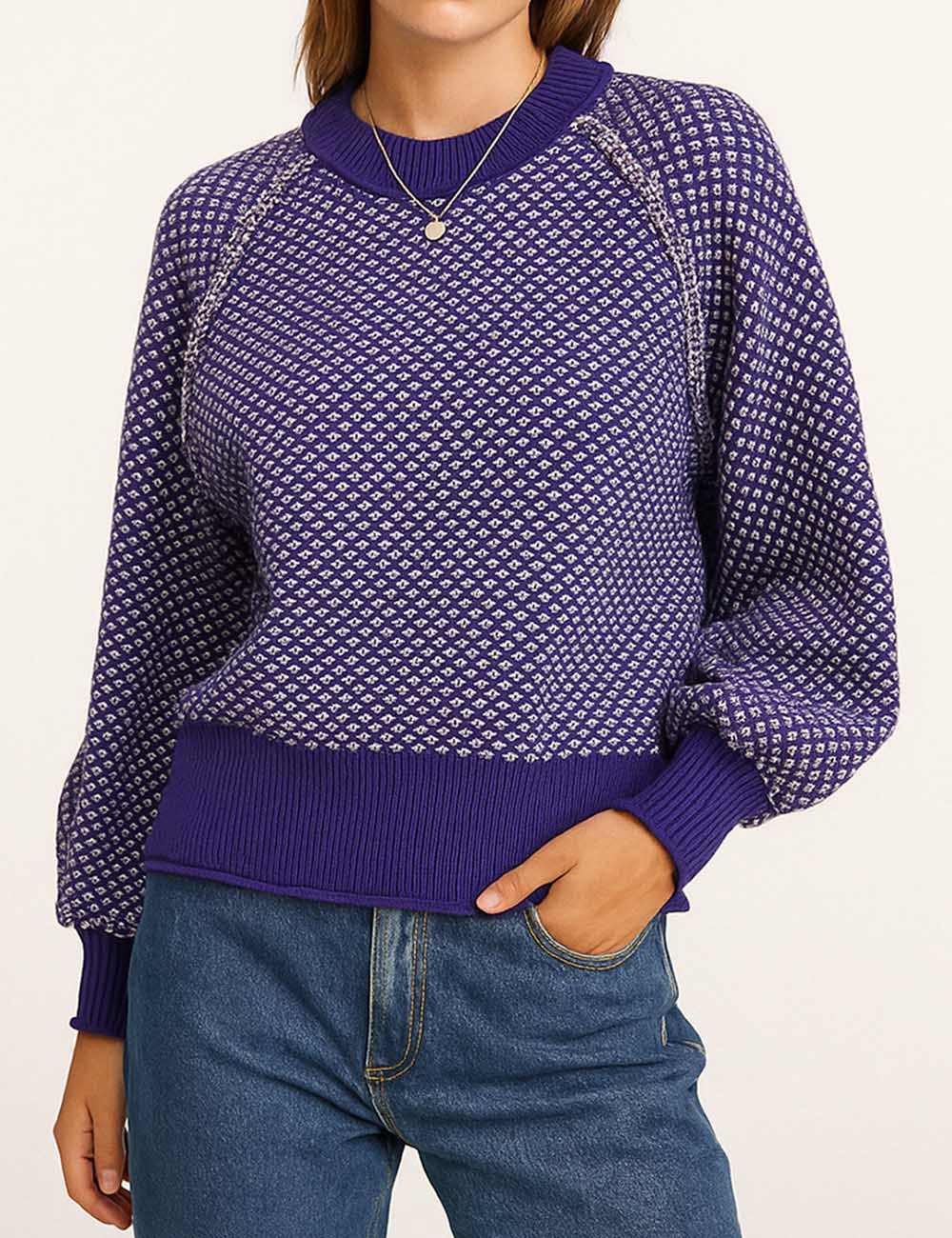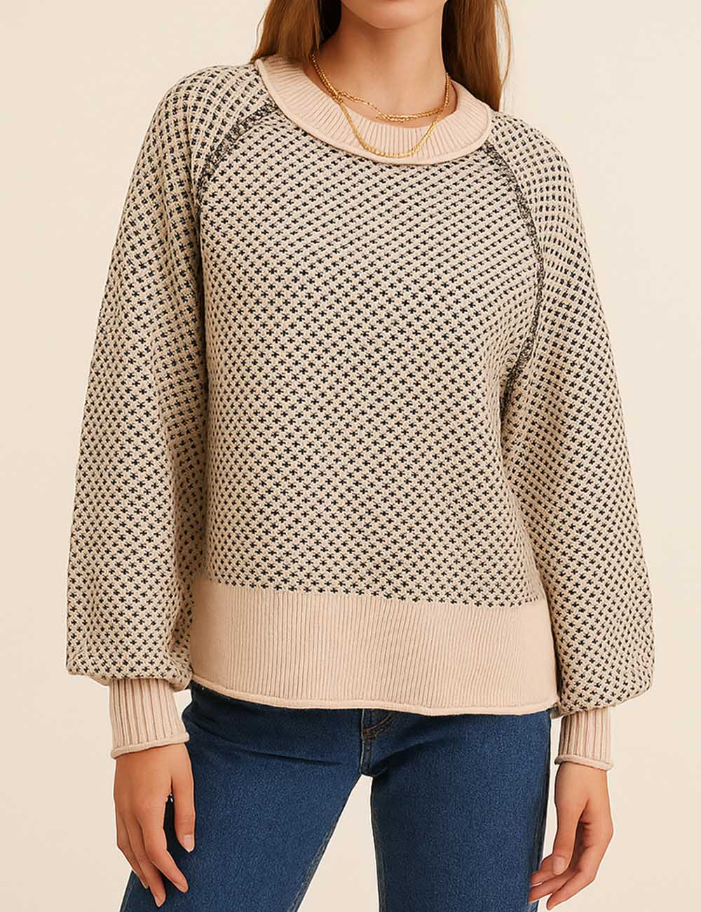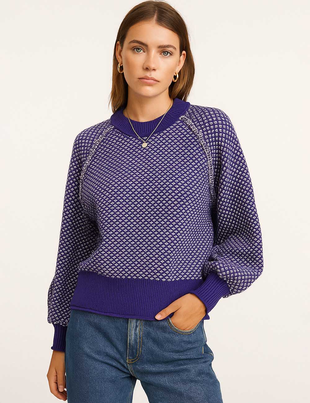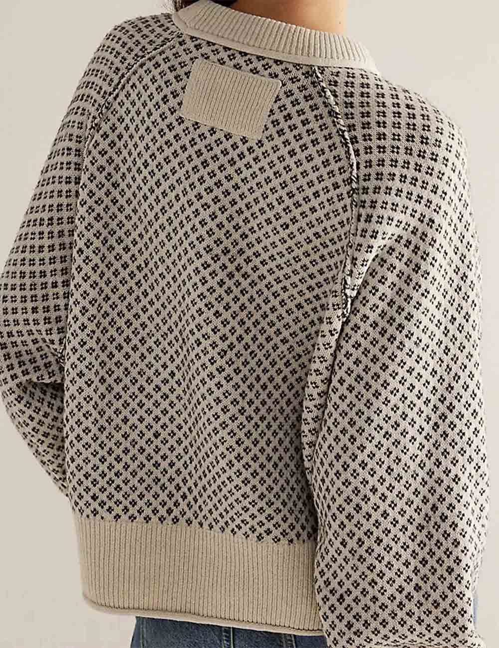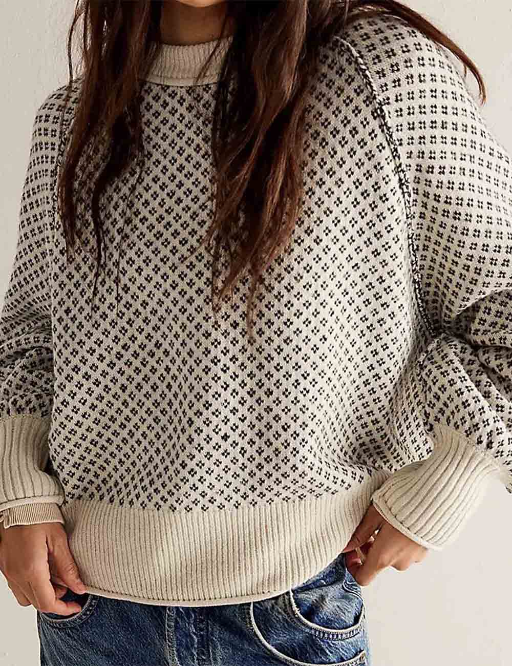 Ladies Pullover Jacquard Long Sleeves Knit Sweater