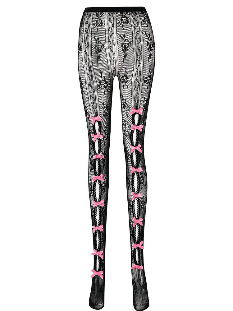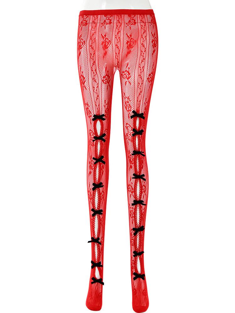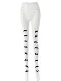 Ladies Punk Bowknot Stockings Color Block Pantyhose SKASC4114