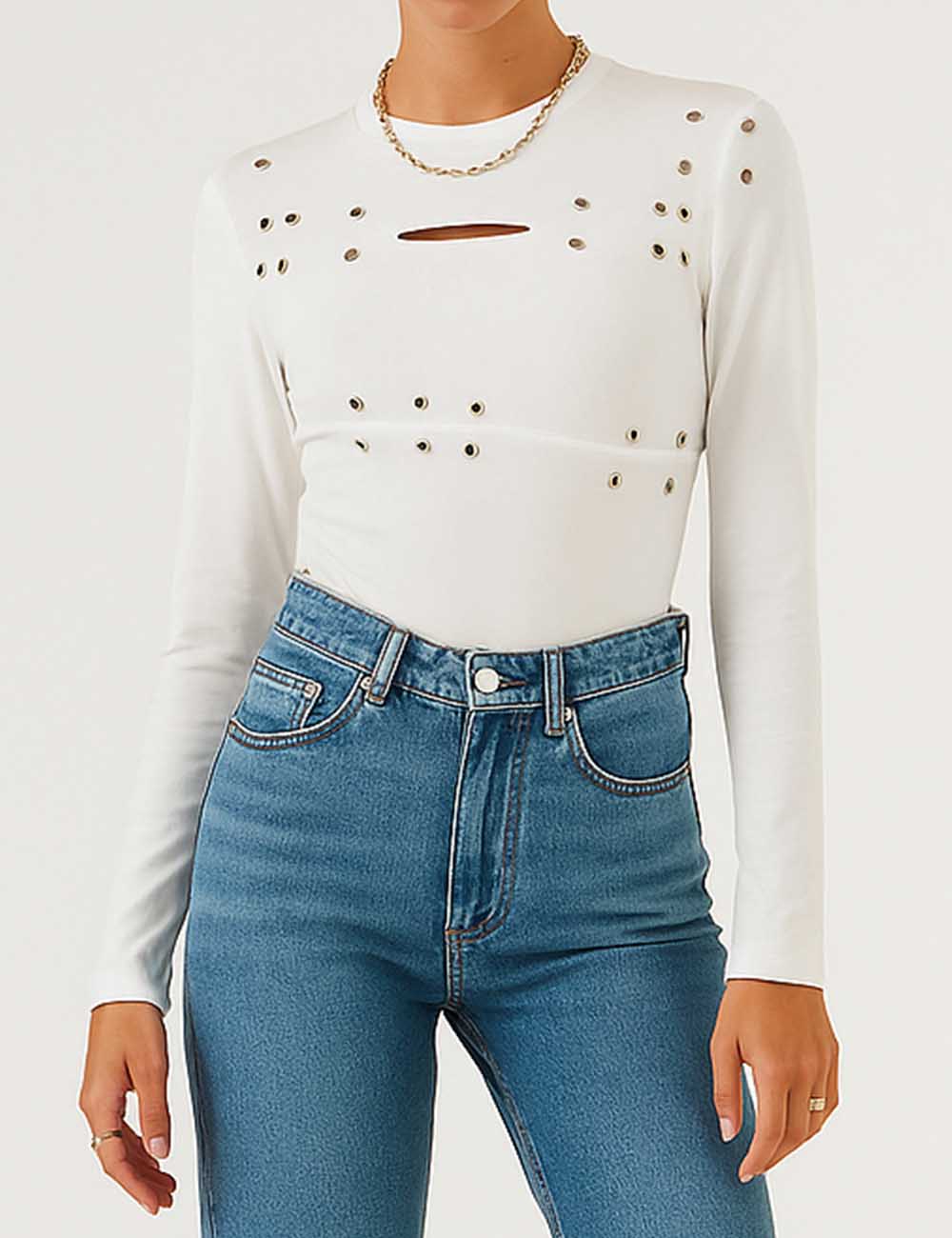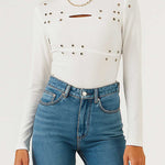 Ladies Punk Ripped Long Sleeves Slim Bodysuit