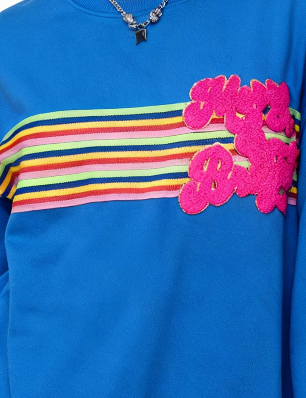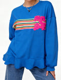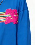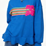 Ladies Rainbow Striped Terry Letter Appliqué Pullover Sweatshirt