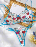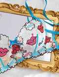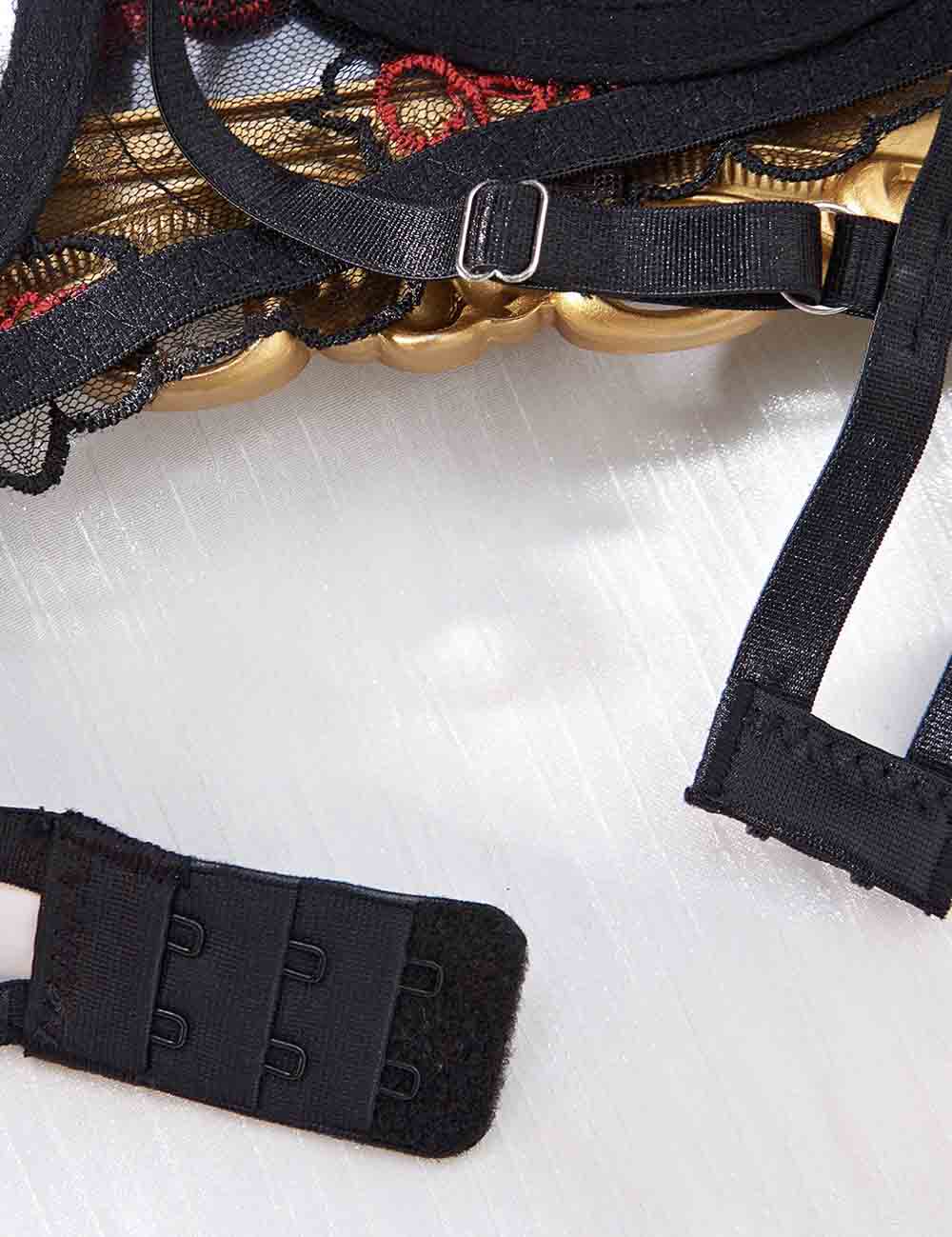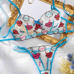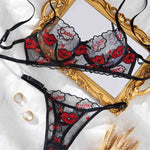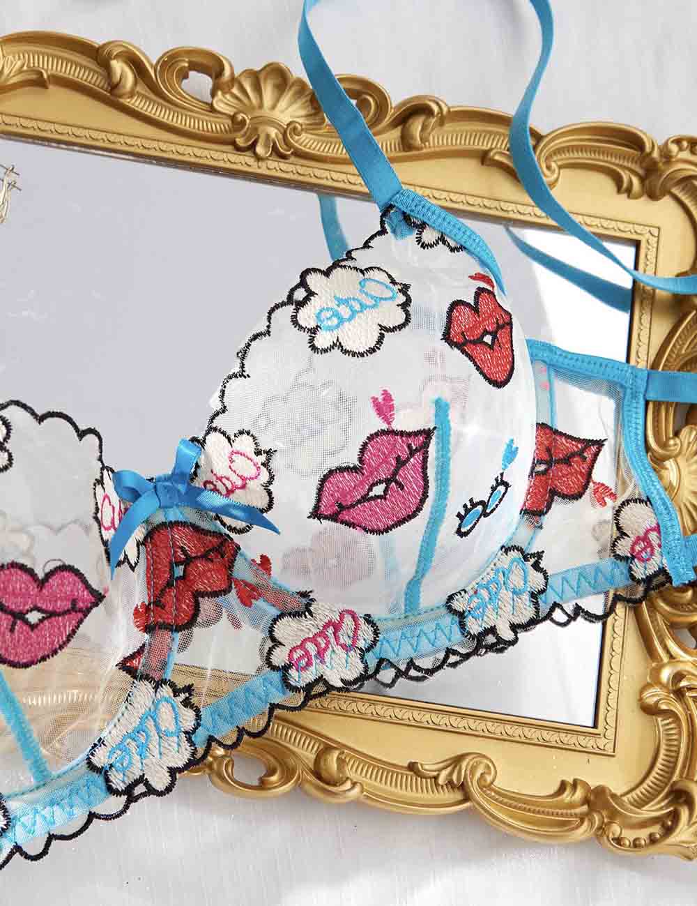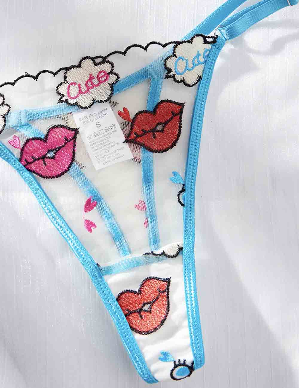 Ladies Red Lip Embroidery See Through 2PCS Lingerie Set 8HF4146