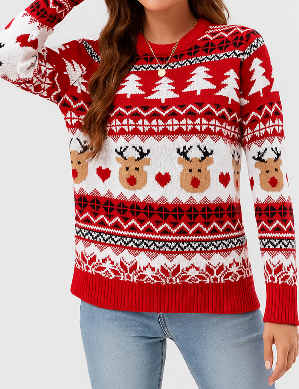 Ladies Reindeer Christmas Pattern Knit Sweater