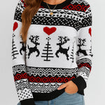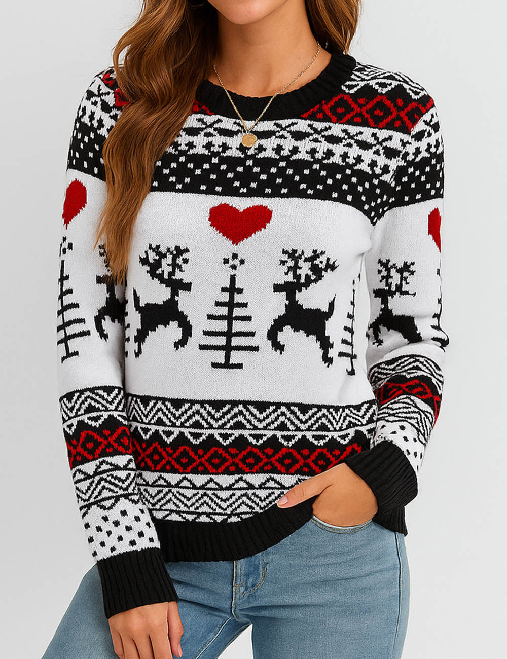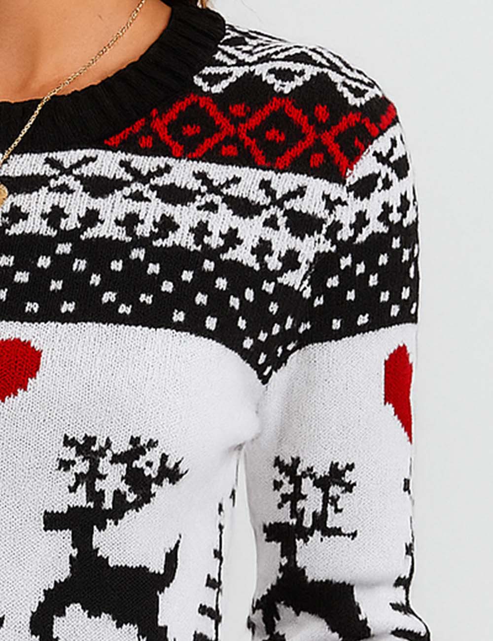 Ladies Reindeer Heart Christmas Pattern Knit Sweater