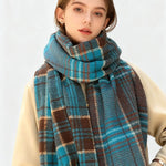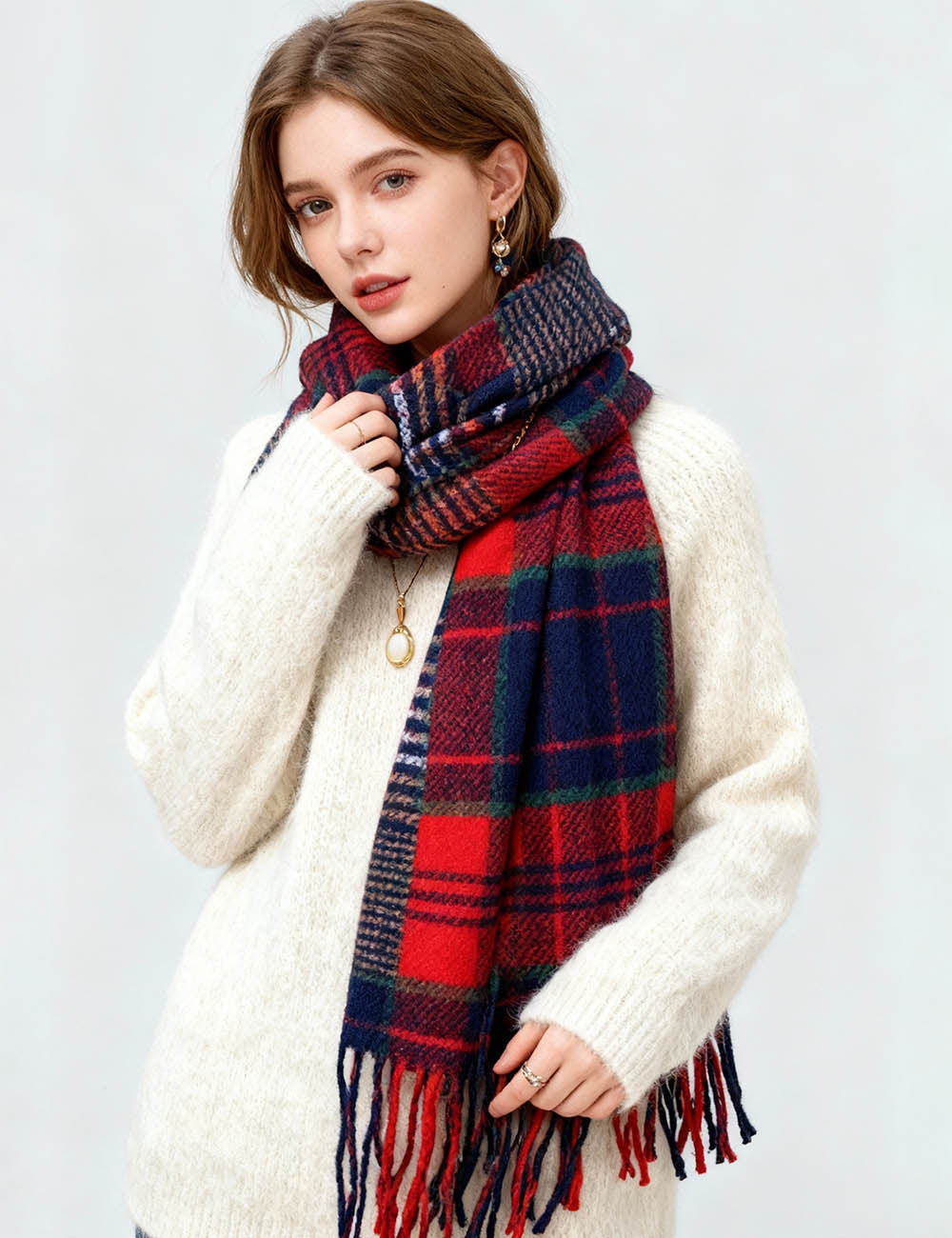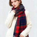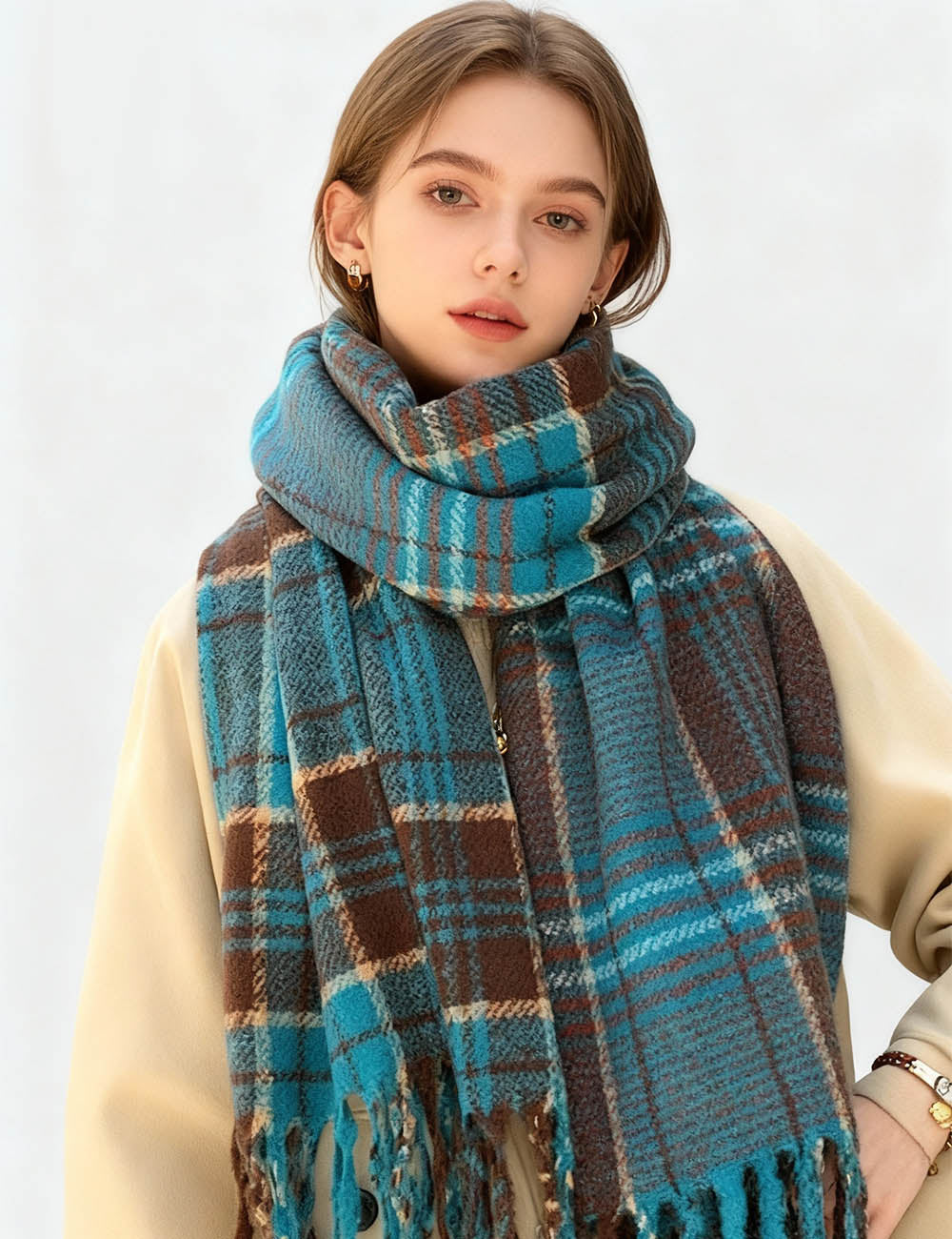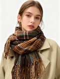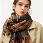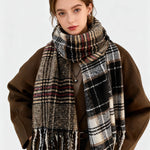 Ladies Retro Plaid Oblong Fringe Knit Scarf