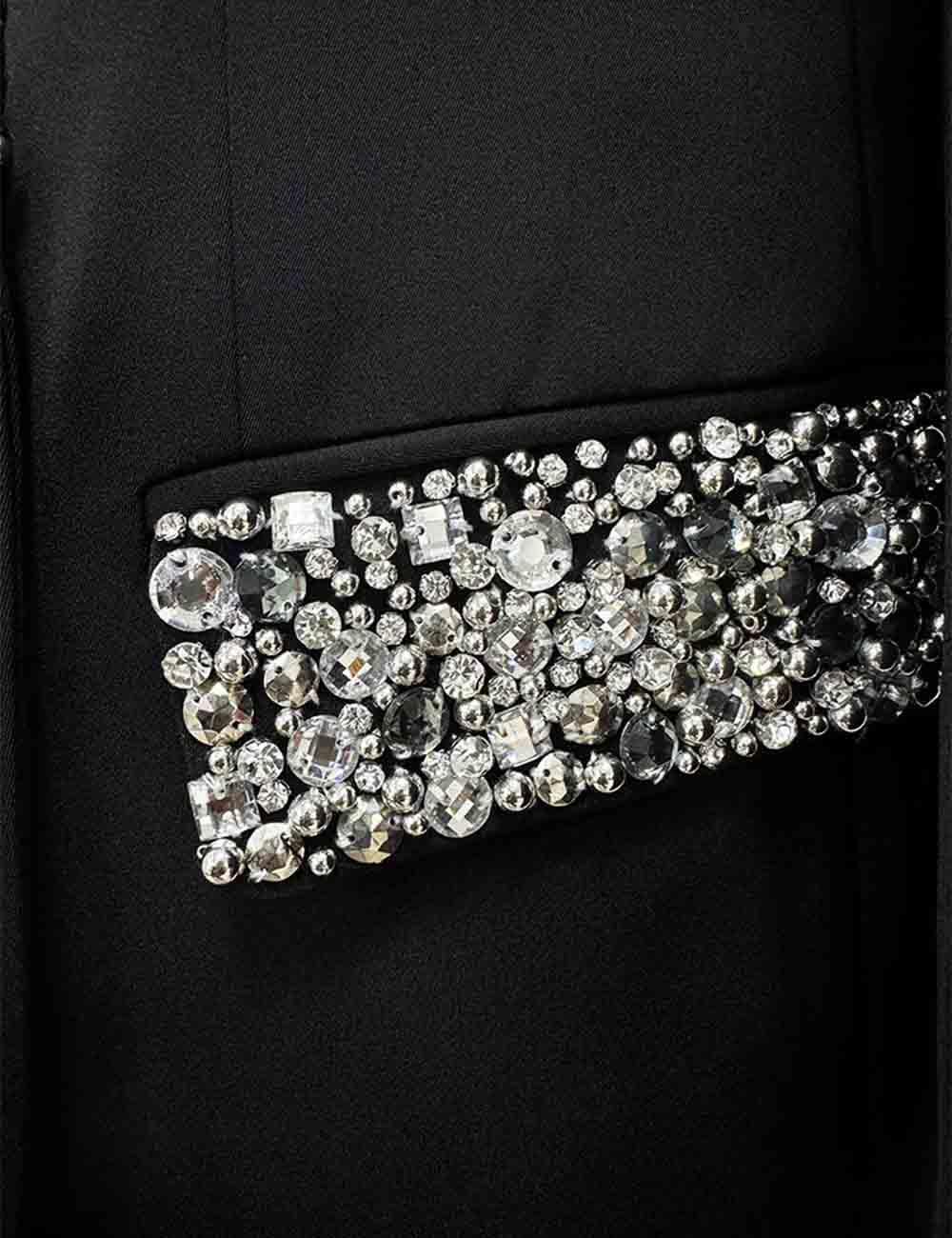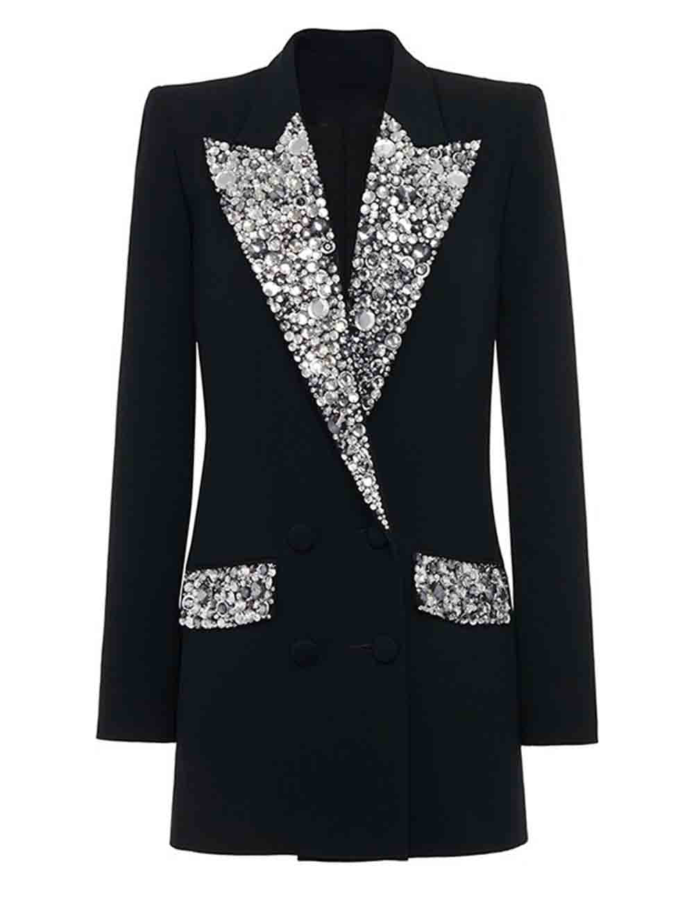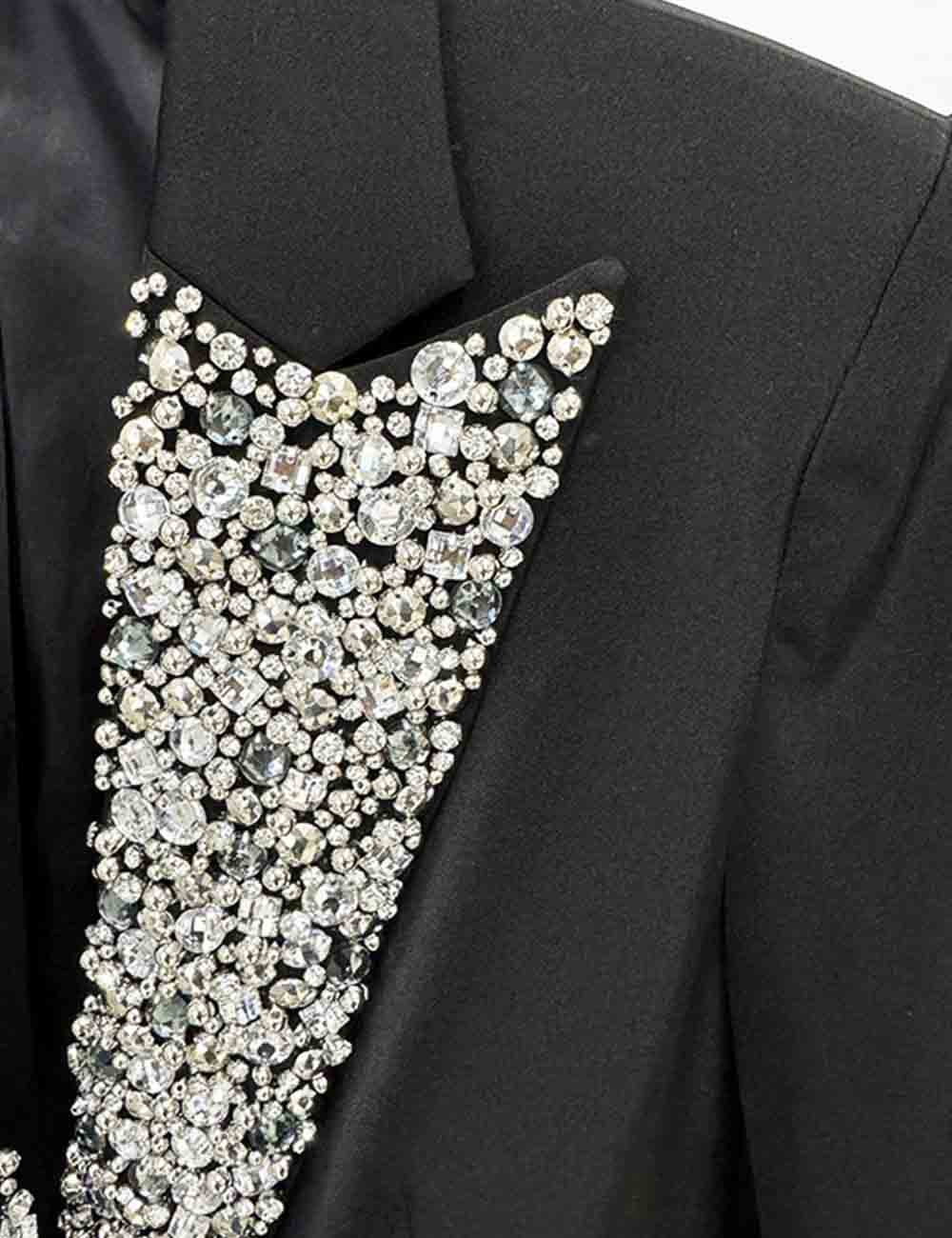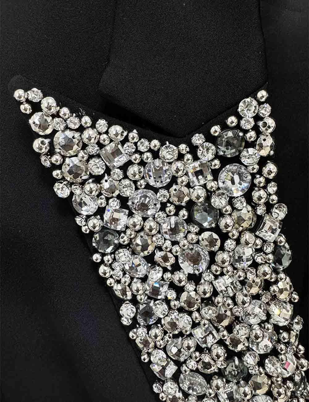 Ladies Rhinestone Peak Lapel Flap Pockets Blazer