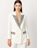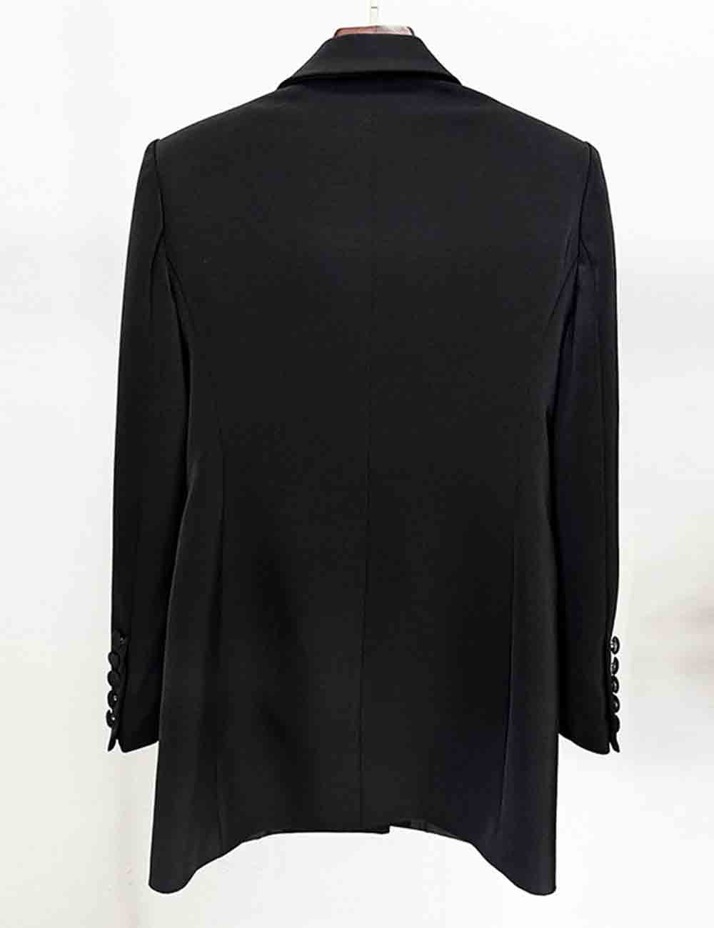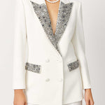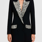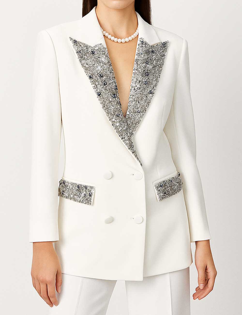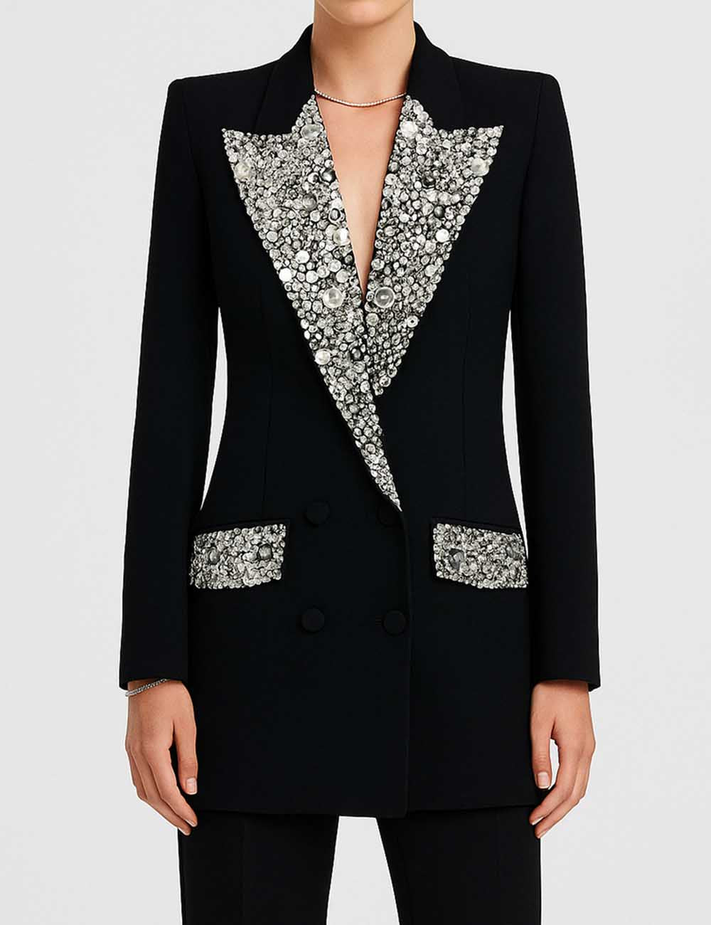Ladies Rhinestone Peak Lapel Flap Pockets Blazer