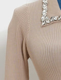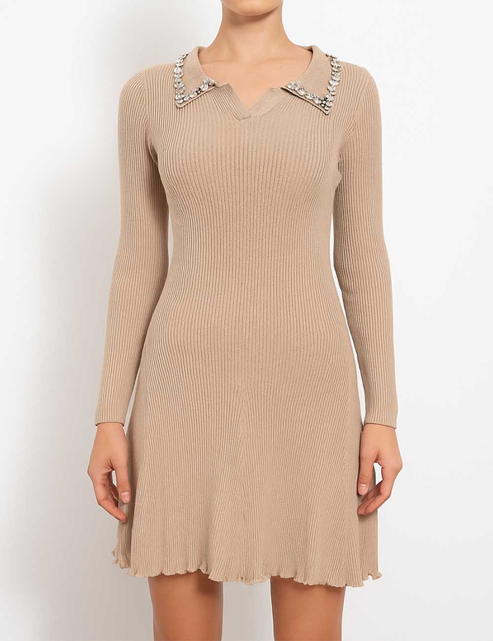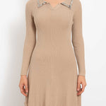 Ladies Rhinestone Peter Pan Collar Ruffled Edge Knit Mini Dress