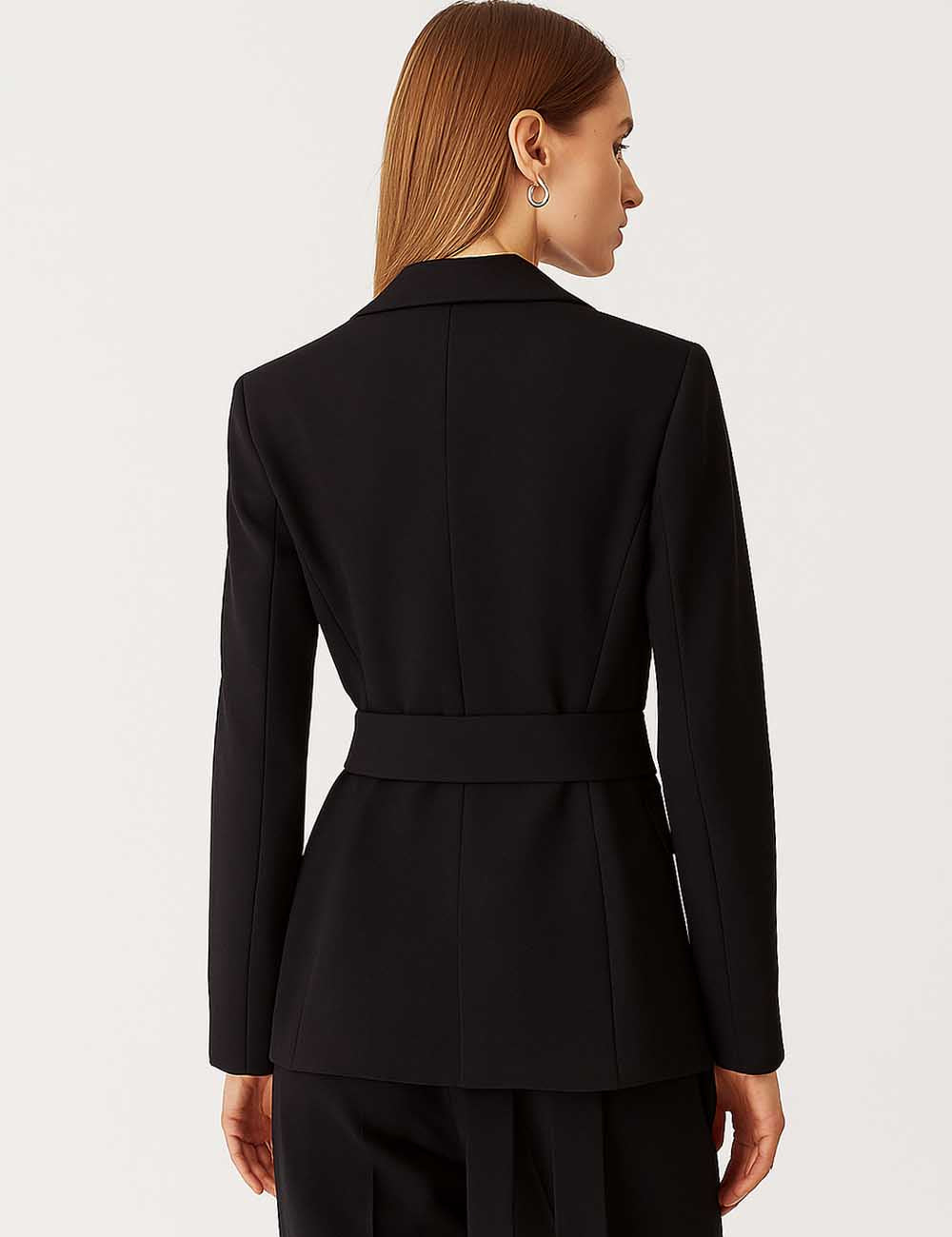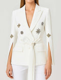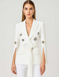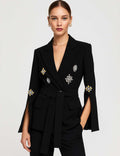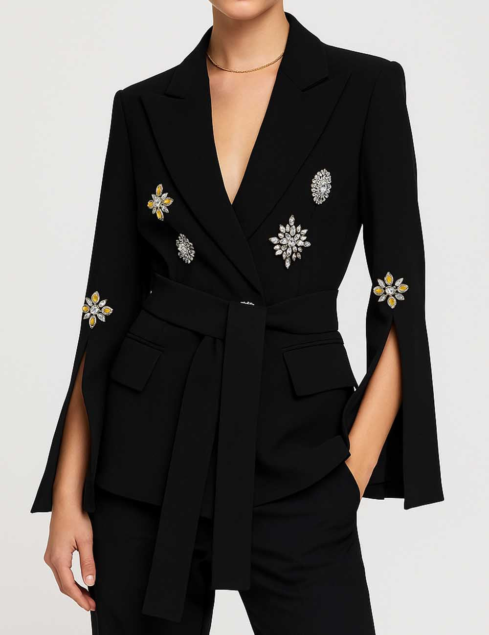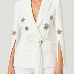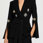 Ladies Rhinestone Waist Belt Long Sleeves Vent Long Blazer