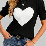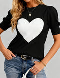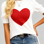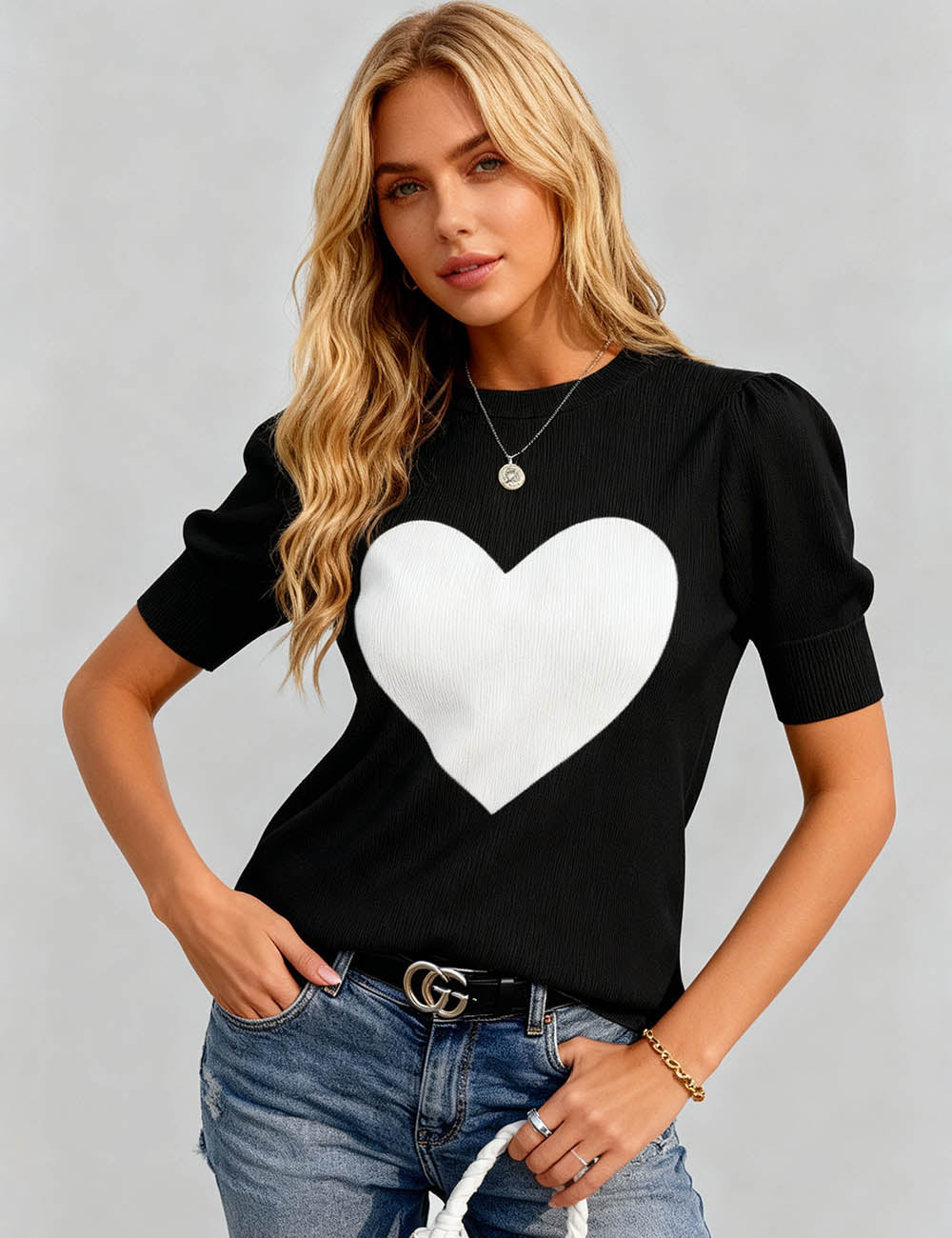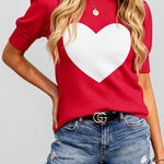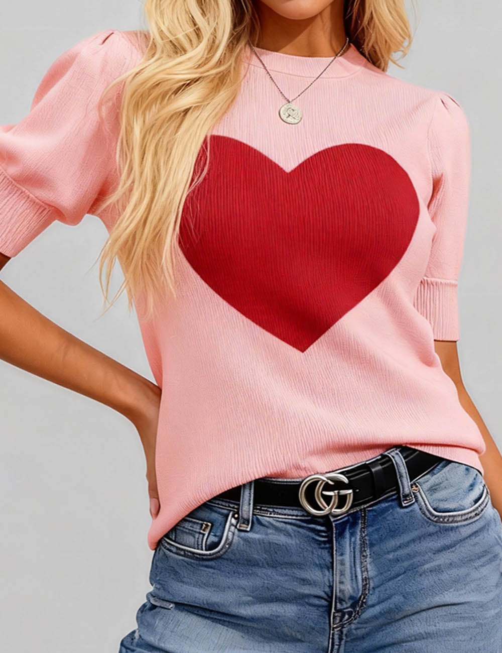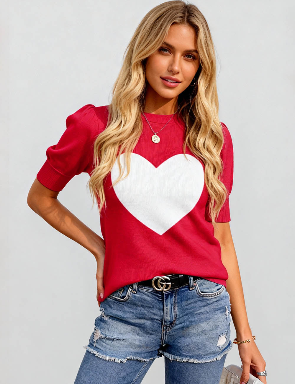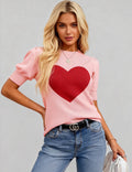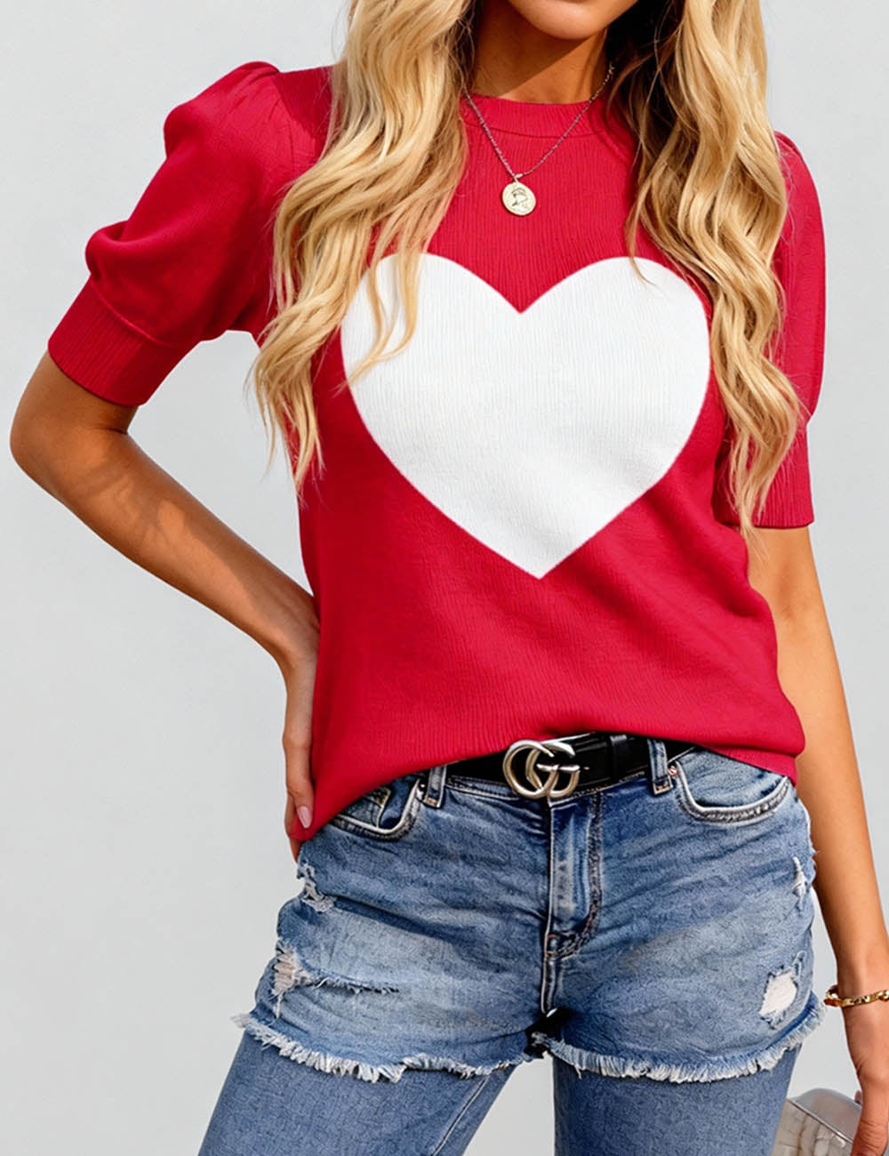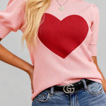Ladies Valentine's Rib Knit Heart Short Sleeves Sweater