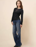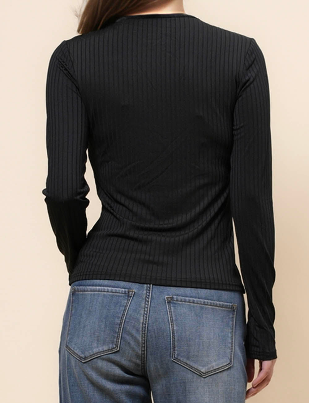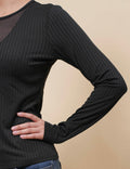 Ladies Rib Long Sleeves Pullover Blouse SKT41027
