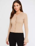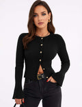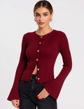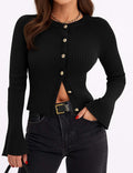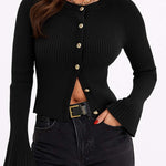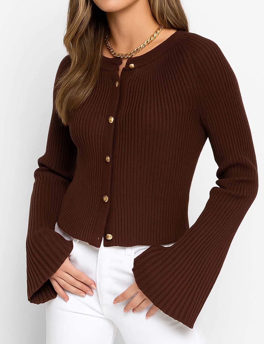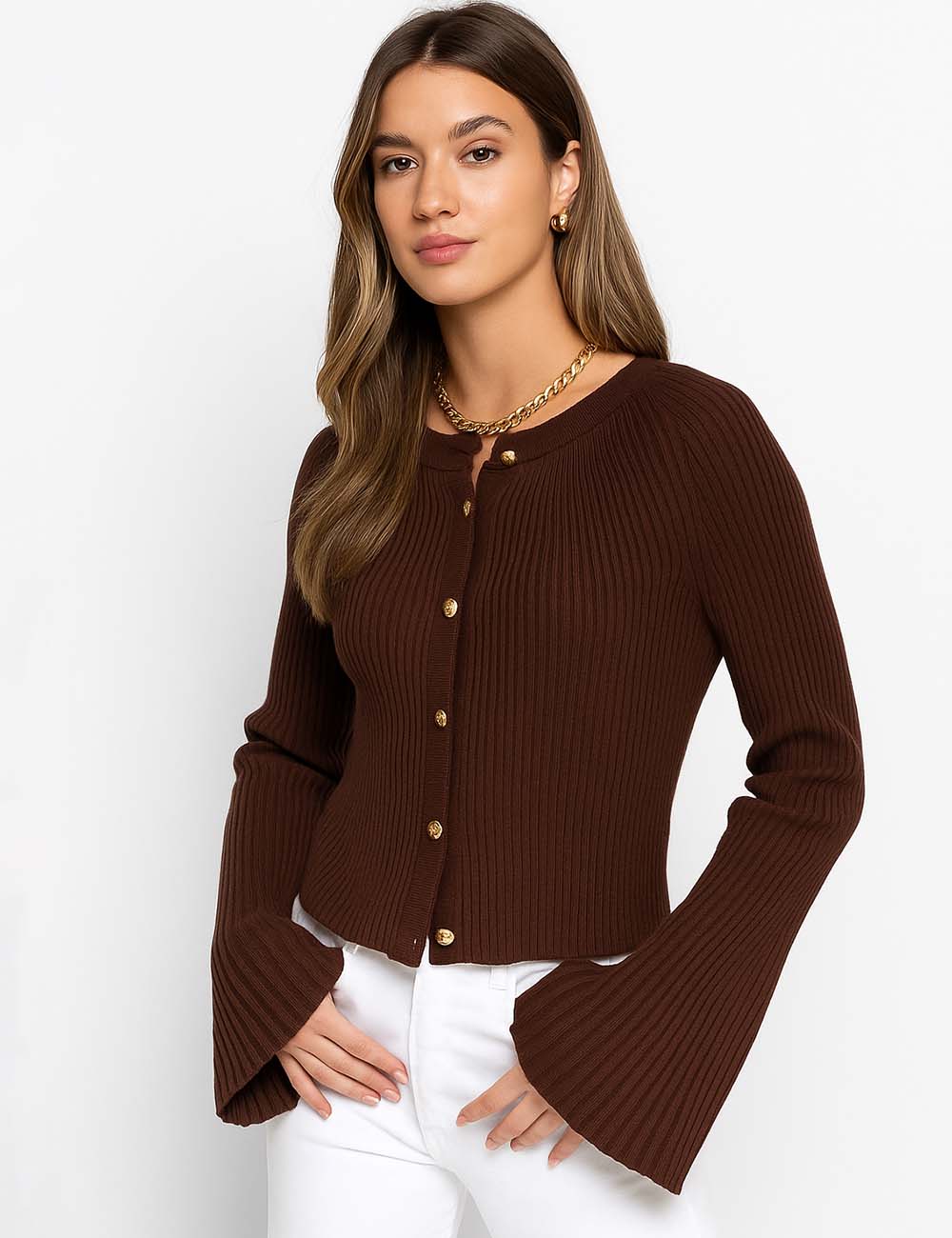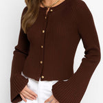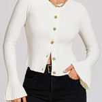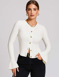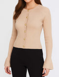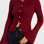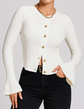 Ladies Ribbed Button Front Flared Sleeves Knit Top