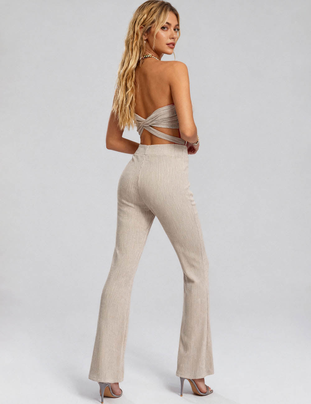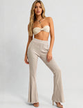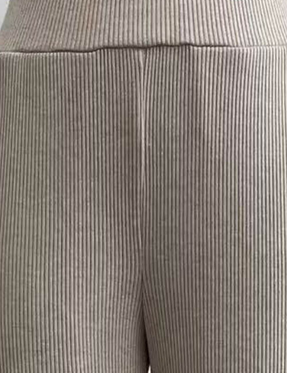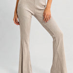 Ladies Ribbed Knit Elastic Waist Flared Leg Pants