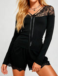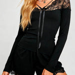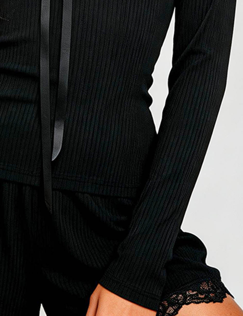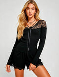 Ladies Ribbed Knit Elastic Waist Lace Trim Wide Leg Shorts