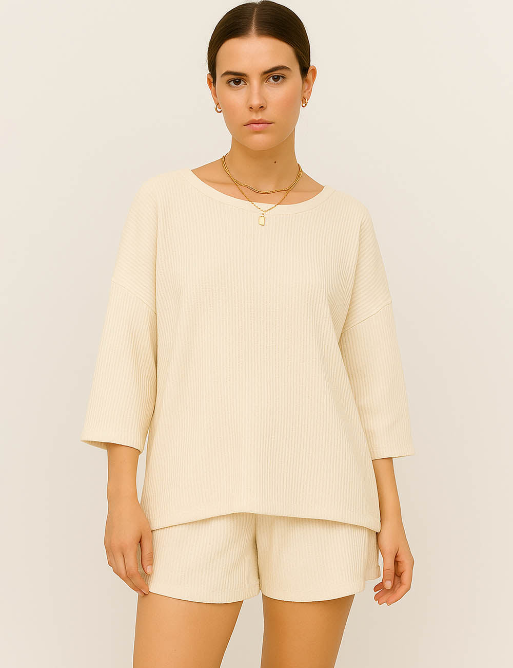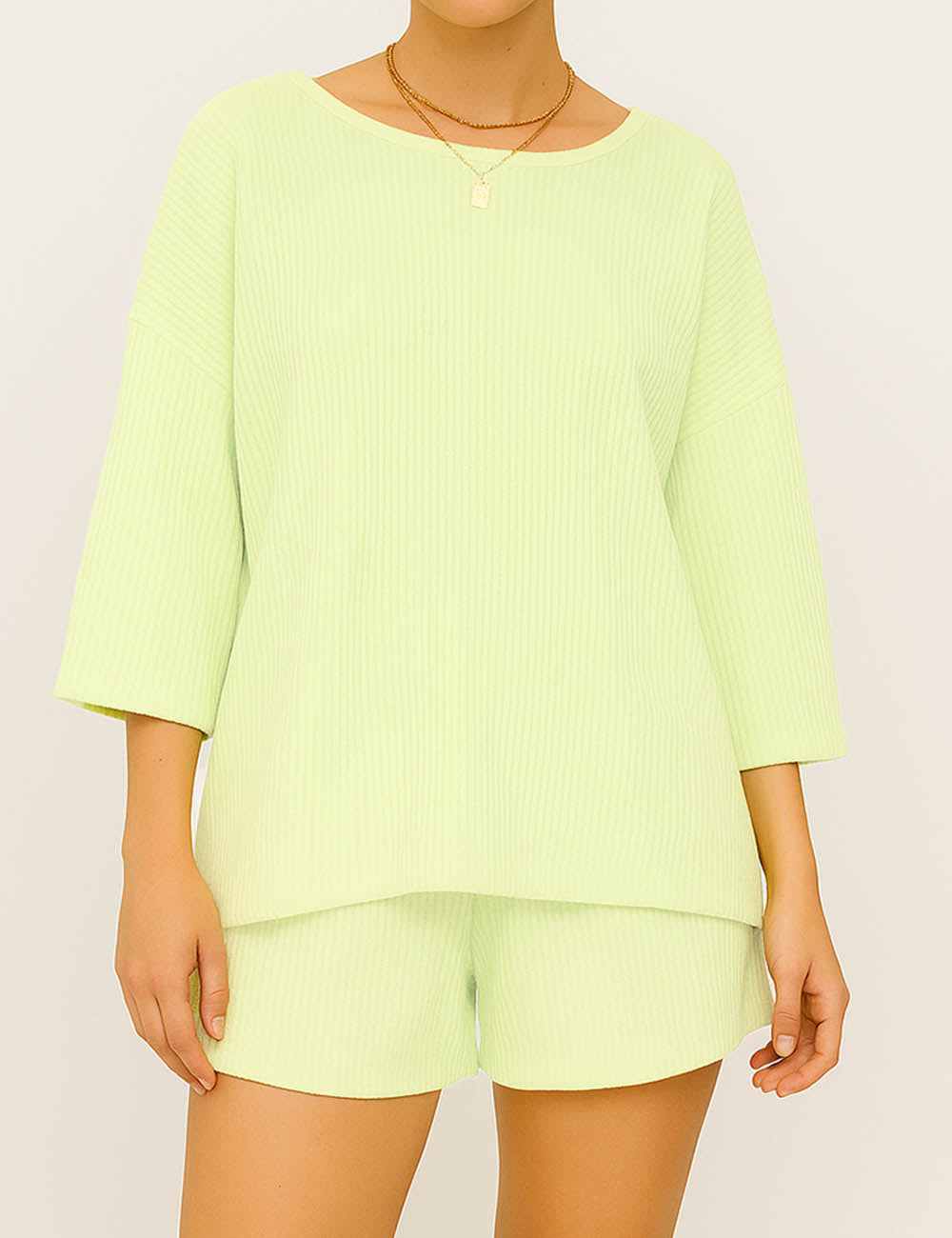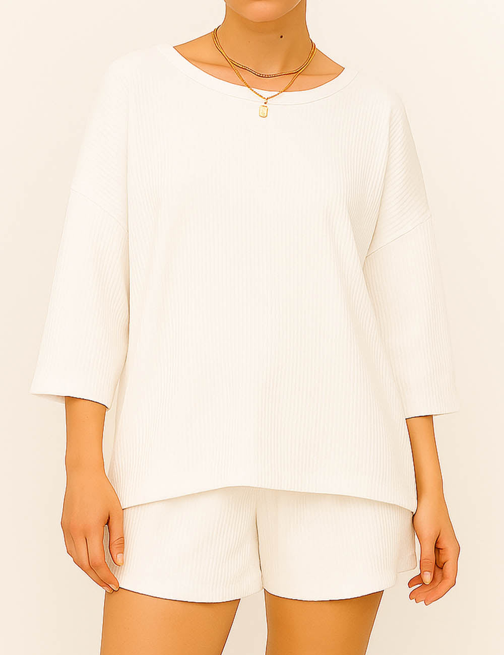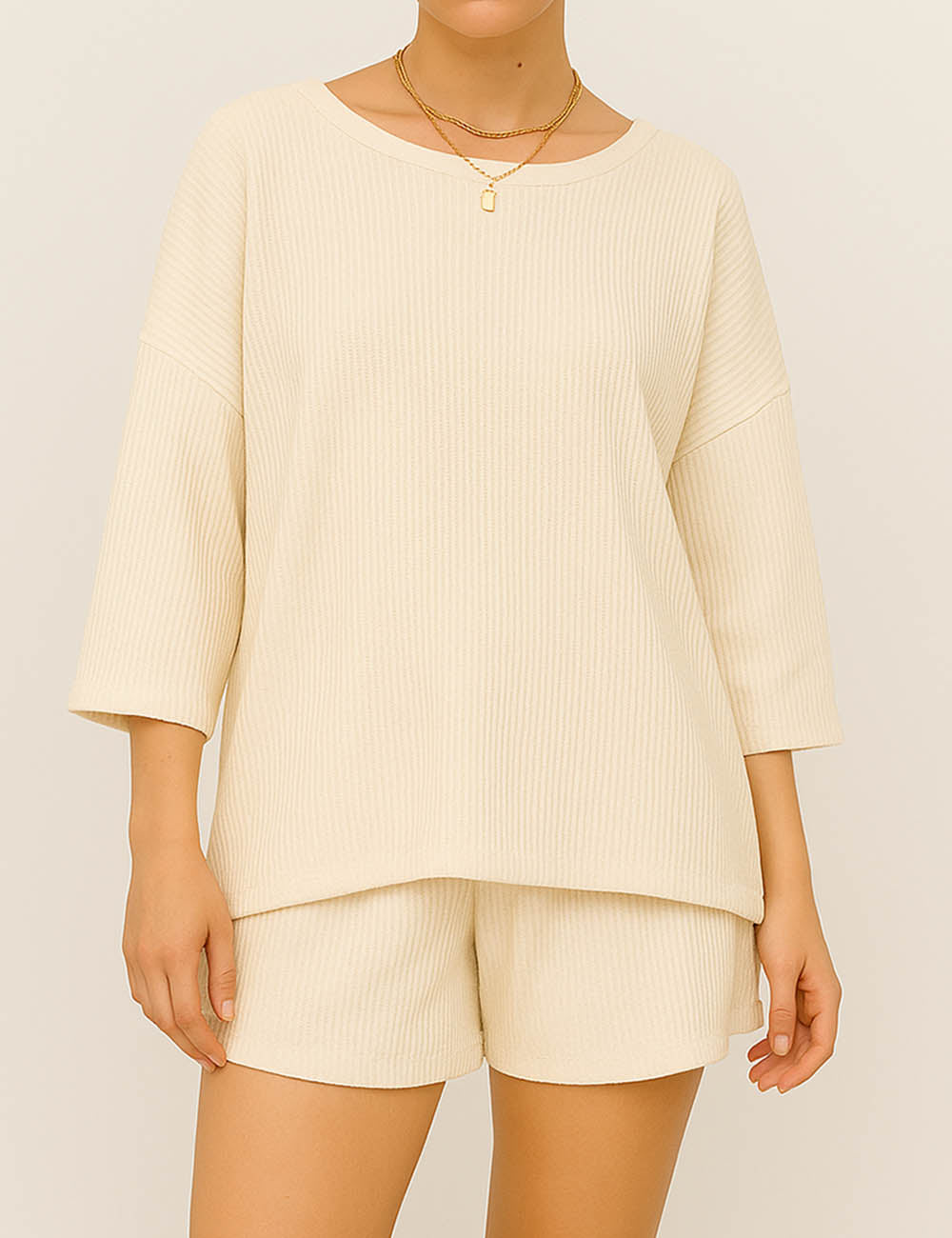 Ladies Ribbed Round Neck Short Sleeves Top & Shorts Set